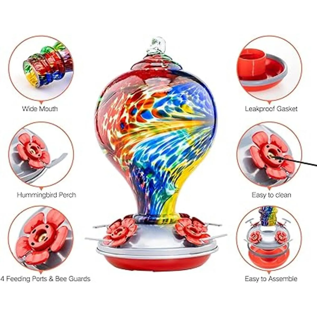 Cómodo de usar: Fácil de ensamblar, llenar y limpiar, la base está herméticamente sellada con una junta a prueba de fugas para evitar que el néctar se derrame.