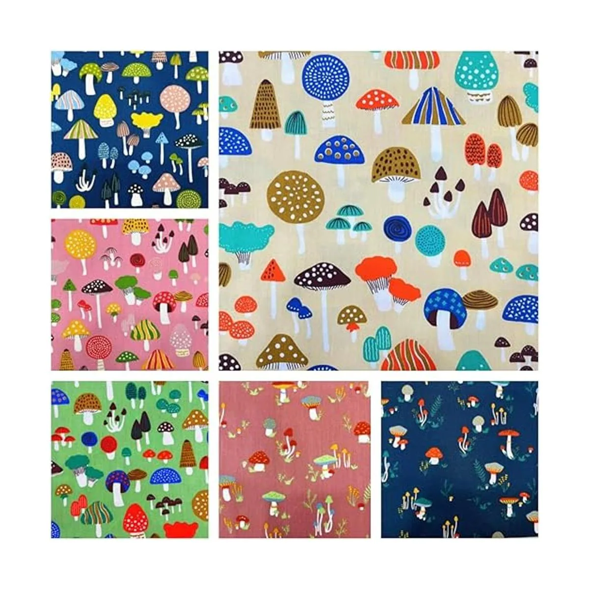 Theme:Mushroom Fabric Image is a Sample of the Prints in This Collection,6 Different Patterns.