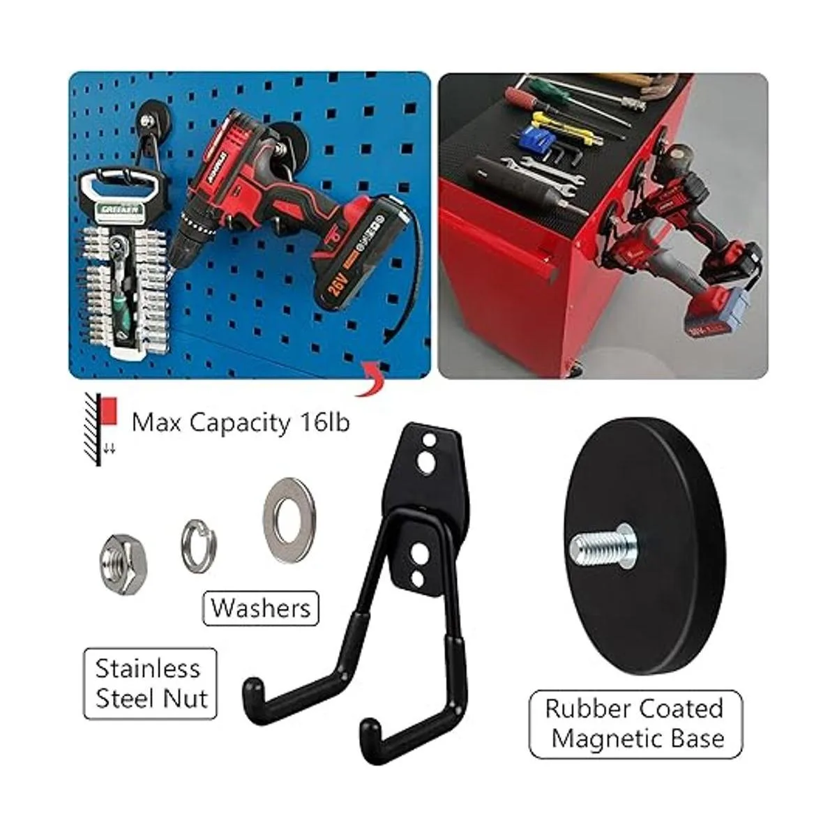 MUTUACTOR Ganchos de garaje con imán fuerte, ganchos magnéticos de almacenamiento de garaje resistentes, ganchos de almacenamiento de garaje de acero para pared, organizador de almacenamiento de garaje para almacenar cables, herramientas de jardín, herramientas eléctricas..