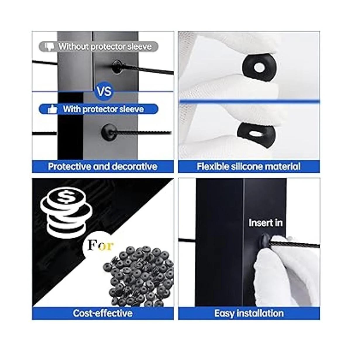 Material y rentable: este hardware de barandilla de cable negro está hecho de gel de sílice de calidad, que tiene alta tenacidad y elasticidad. Es rentable y tiene una excelente estabilidad de temperatura, ideal tanto para uso en interiores como exteriores. Proporcionamos fundas protectoras de silicona en colores de gris y negro, busca Muzata CB29 para encontrar diferentes colores