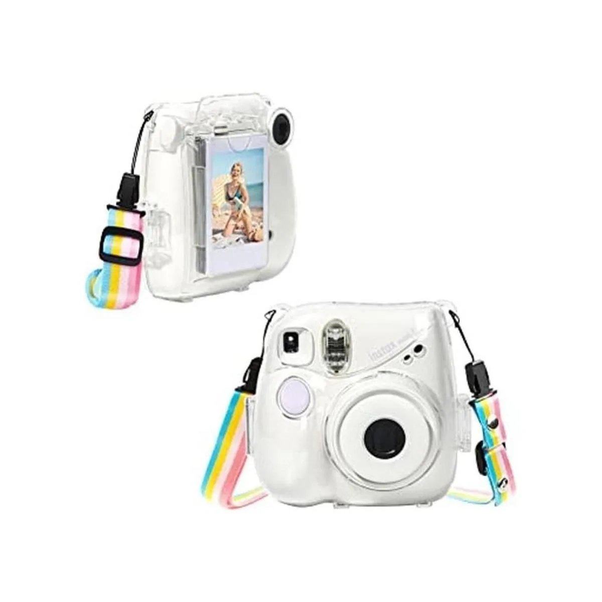 Correa de hombro: viene con correa de hombro arcoíris, extraíble y ajustable, lo que hace que esta funda transparente Instax Mini 7 Plus/Mini 7 sea más cómoda, fácil de colgar y fácil de transportar.