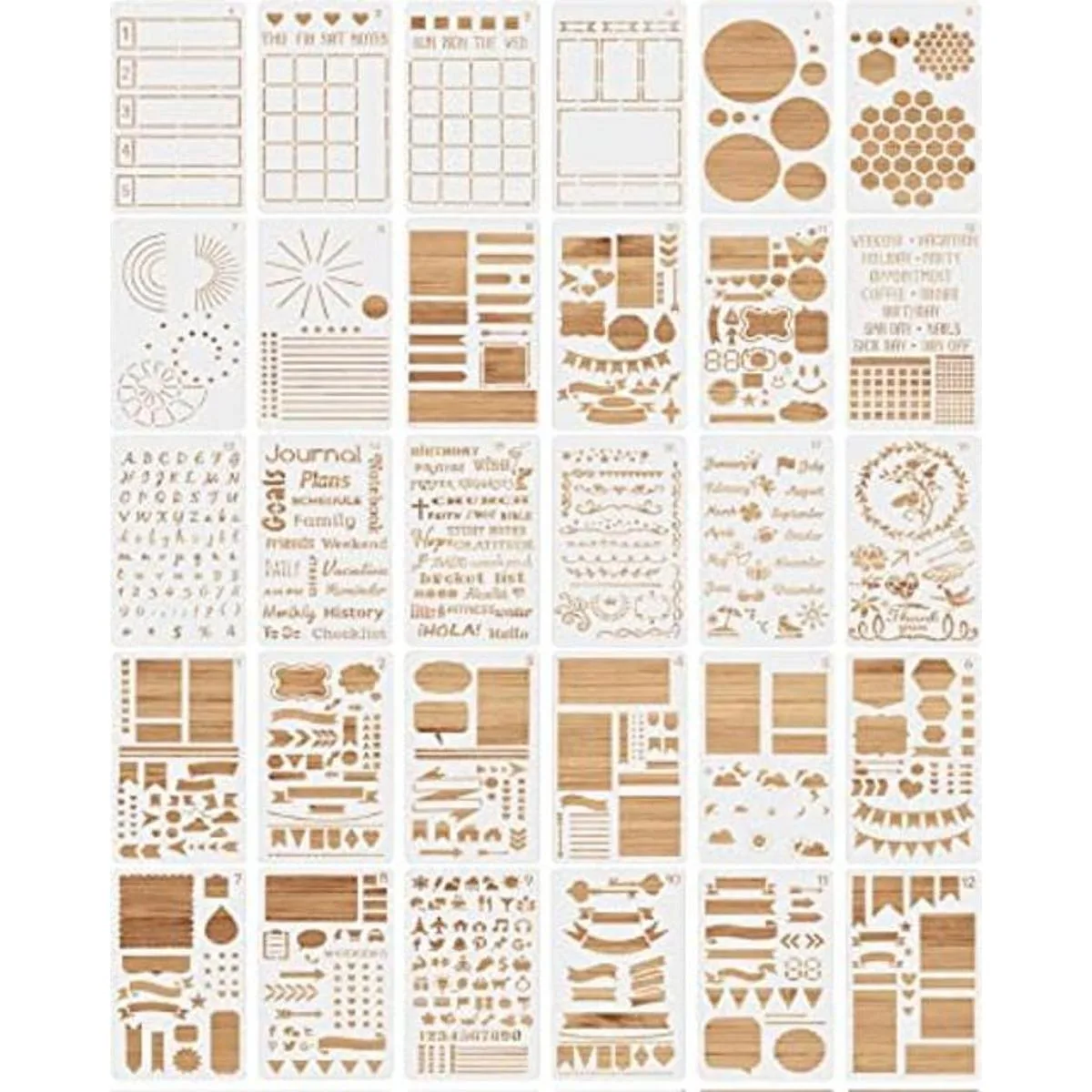 MWOOT Juego de 30 plantillas de diario mixtas, plantilla de planificador, plantilla de dibujo, formas reutilizables, suministros de bricolaje para álbumes de recortes, cuadernos, tarjetas, decoración de pared de madera 7.0 x 4.0 in