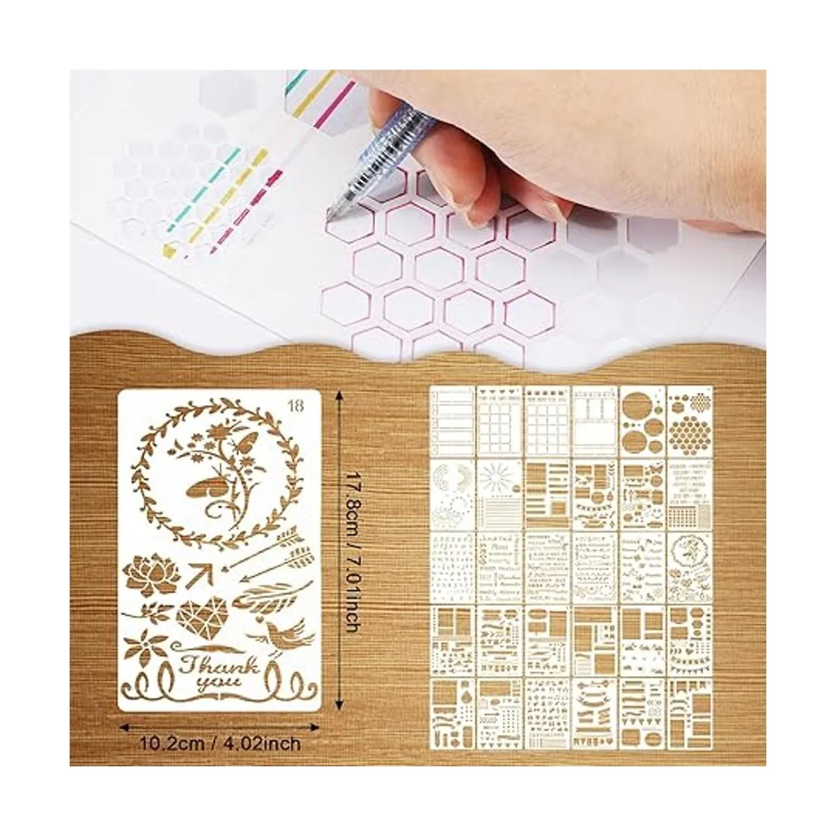 Juego de plantillas de diario surtidas: recibirás 30 piezas de diferentes formas de patrones, incluyendo letras, forma, línea, diseños de números. Bonito tamaño de 7.0 x 4.0 in cada plantilla. Ideal para la mayoría de obras de arte, proyectos en casa, graffiti de pared y pintura de madera.