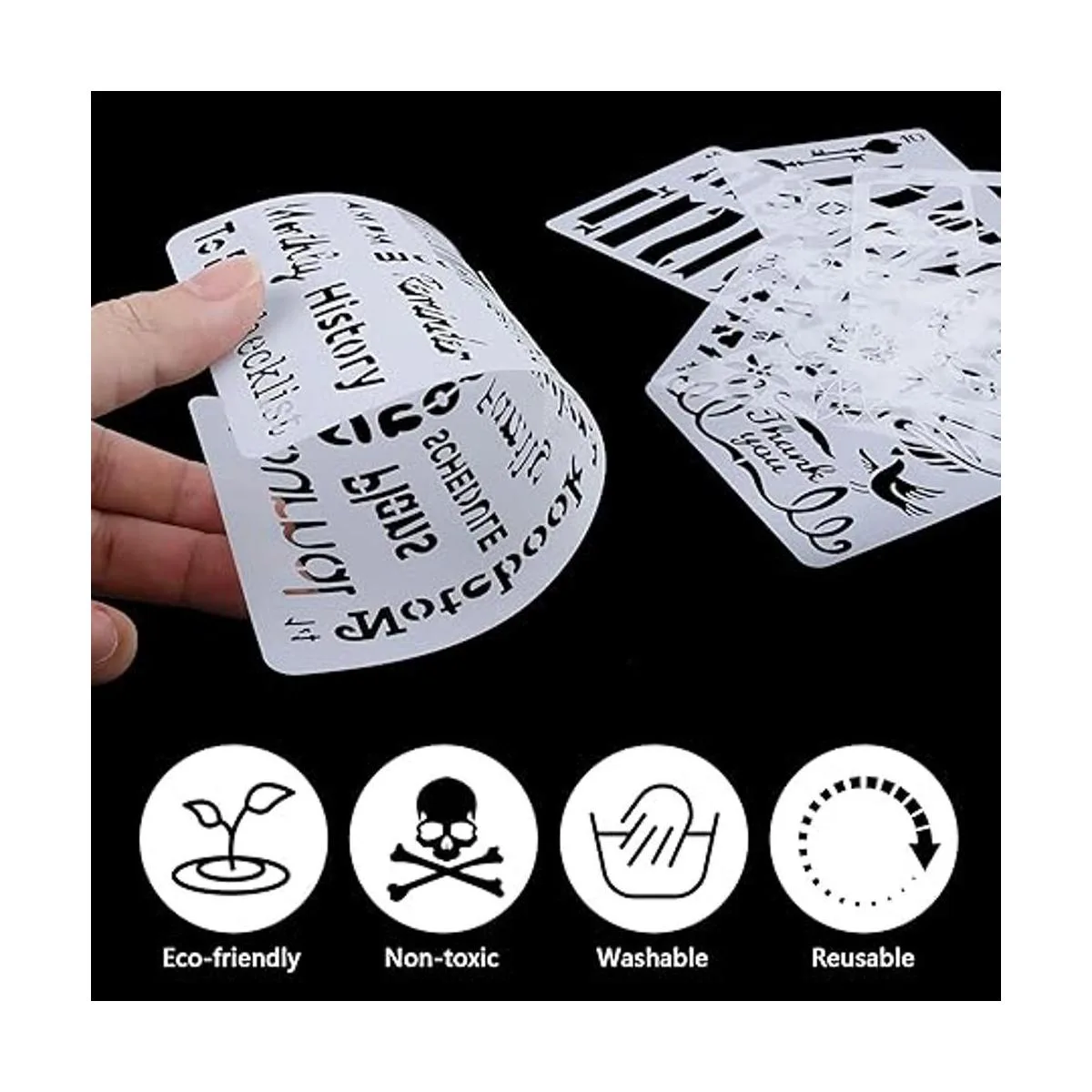 Material seguro y reutilizable: este juego de plantillas de pintura está hecho de material PET, no tóxico y ecológico. Flexible y duradero, ligero y fácil de llevar. Lavable y reutilizable, fácil de limpiar con agua o jabón.