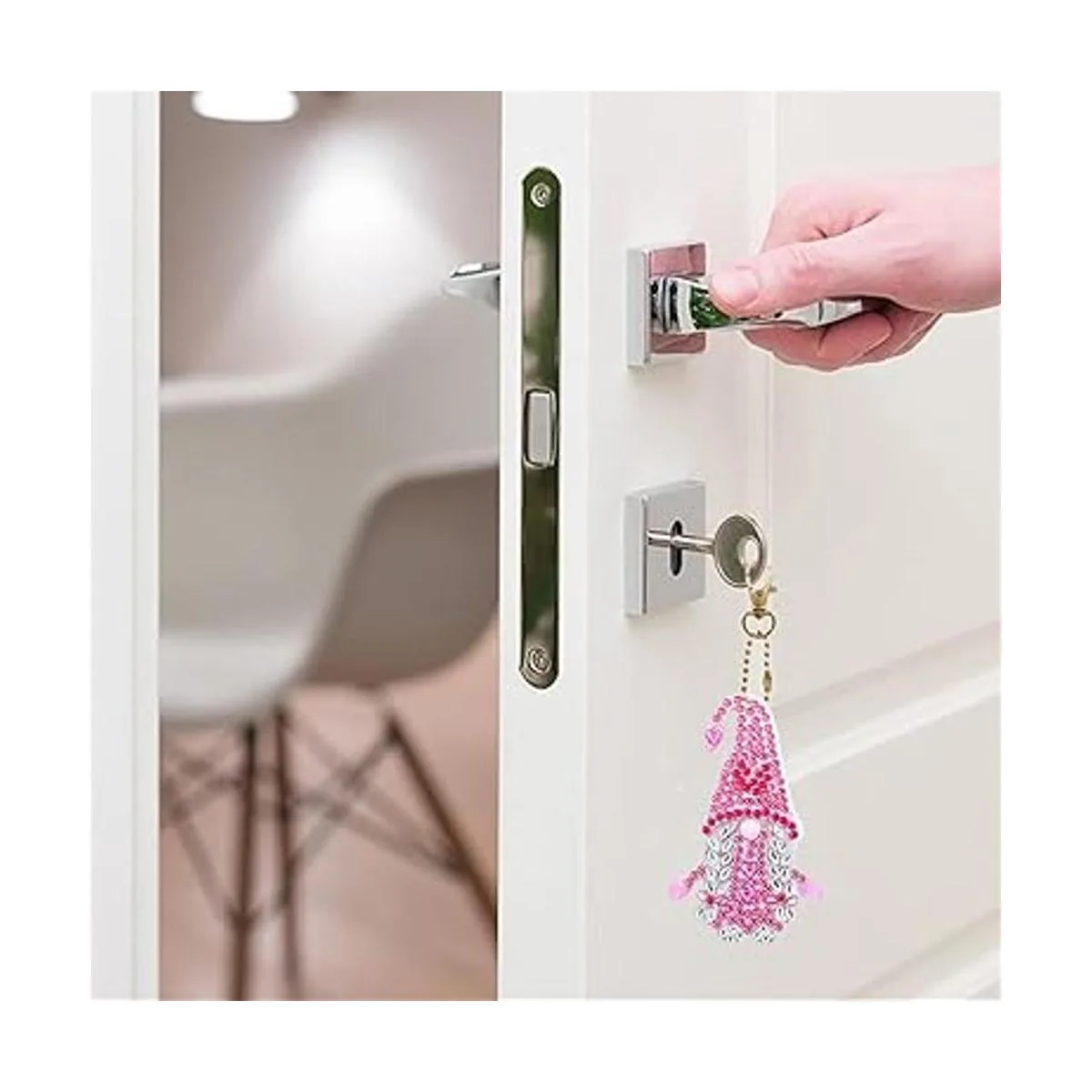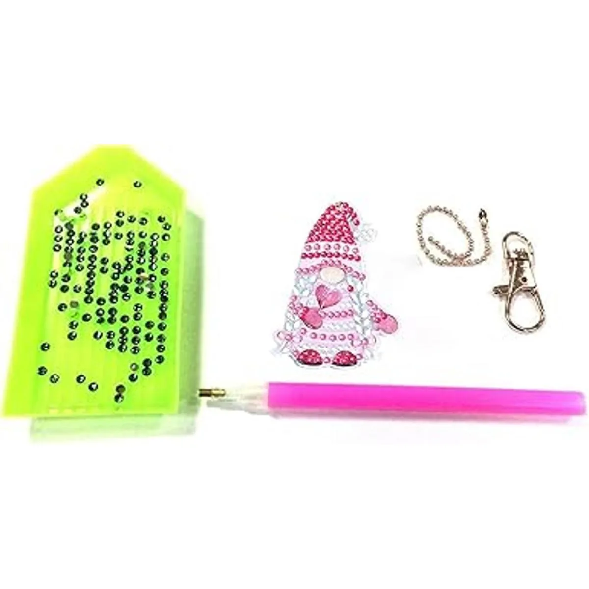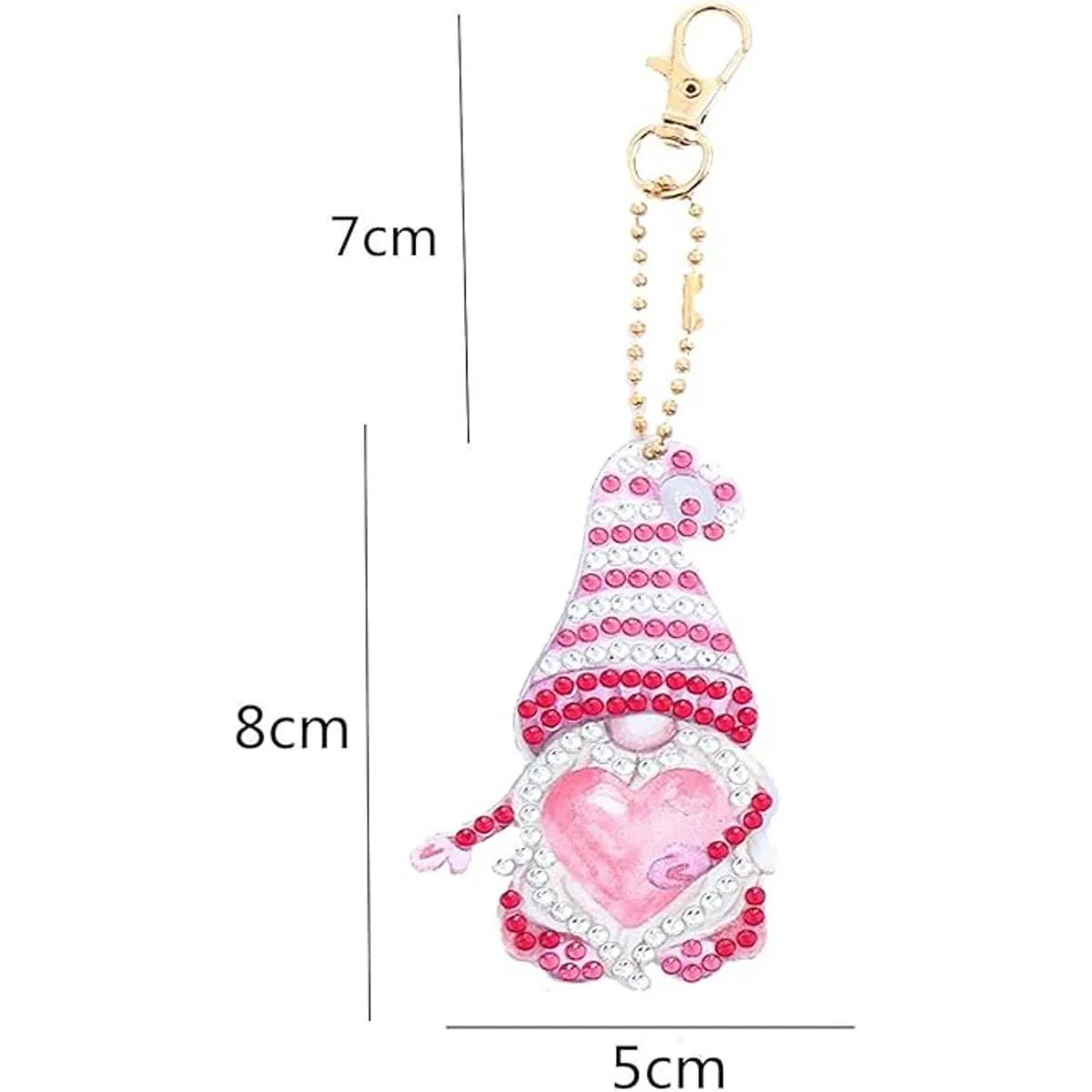 Mwoot Kit de 5 llaveros de pintura de diamantes 5D de doble cara, diseño de diamantes de imitación para manualidades, taladro redondo enano, bonito llavero de gnomo de cristal, llavero de pintura de diamantes de imitación, colgante para mujer, mochila móvil, decoración de bolsos rosa, Rosado