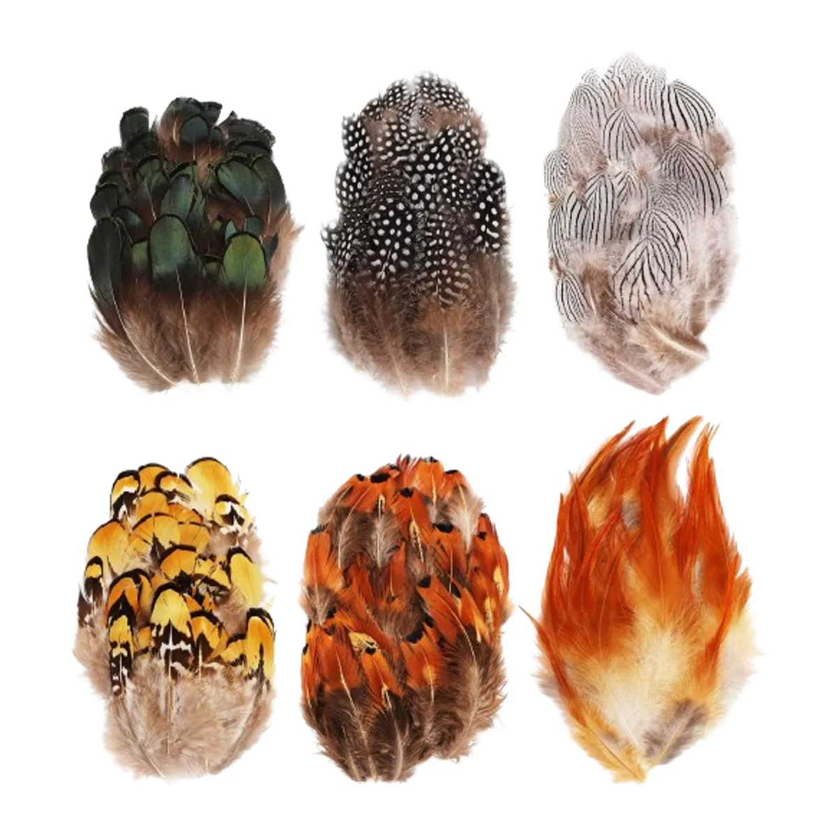 Mwoot Plumas de pollo naturales para manualidades, 180 unidades, 6 estilos, para manualidades, manualidades, bodas, decoración del hogar, fiesta, etc.