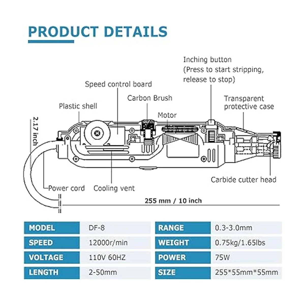 MXBAOHENG Máquina de pelado de alambre magnético de mano de 75 W, cortador de pelacables, raspador de pintura de alambre esmaltado, 12000 rmin 110 V