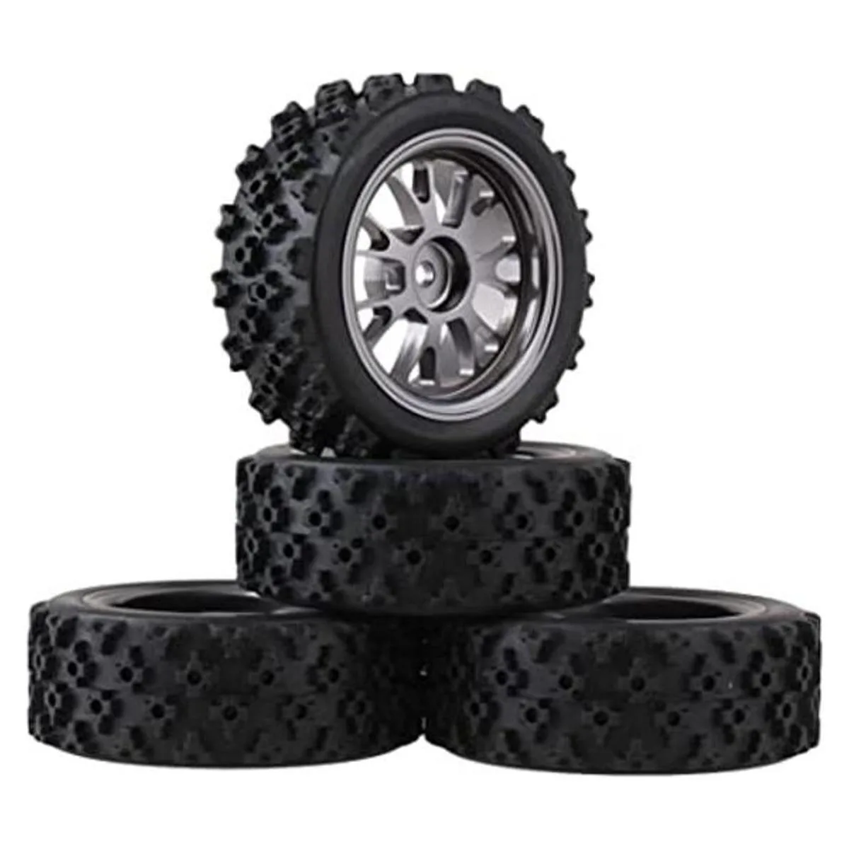 Mxfans Llantas de goma con diseño de flores negras llantas de aleación de aluminio en forma de Y para coches RC 110, juego de 4