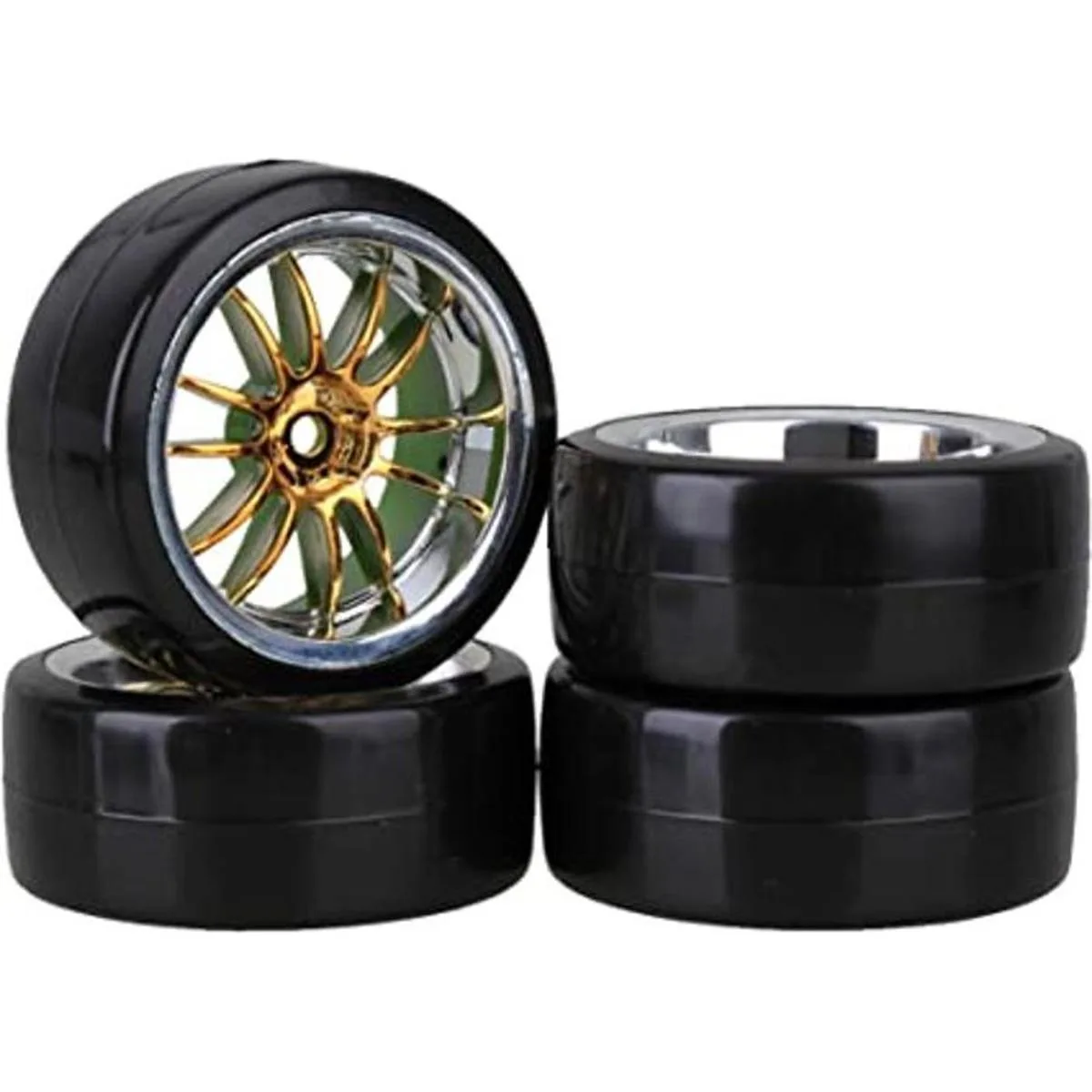 Mxfans RC110 Llantas de rueda lisas, 4 unidades RC110 en carretera y llantas de plástico de oro de 12 radios