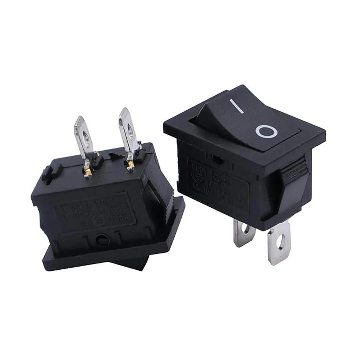 Modelo: KCD11101; Tipo: ONOFF SPST; Terminales: 2 pines; Voltaje nominal: CA 250 V 6 A, CA 125 V 10 A; Color: negro