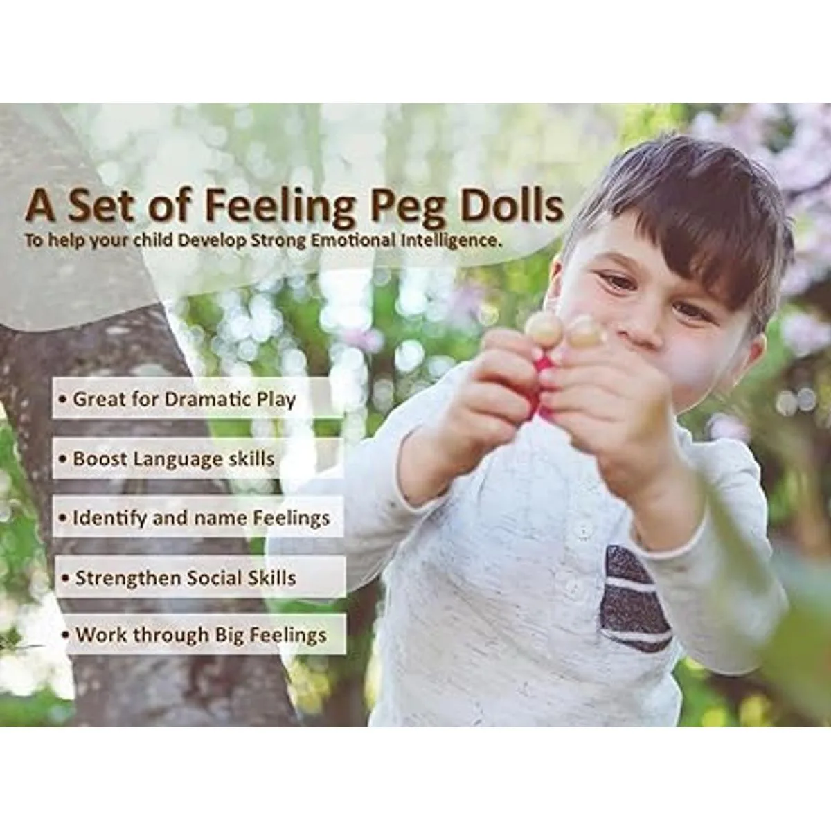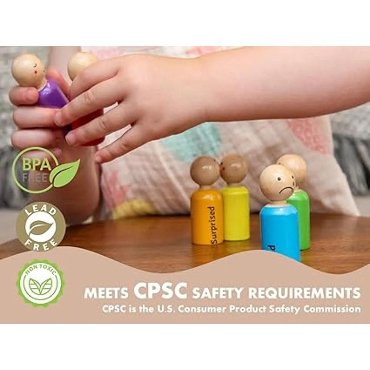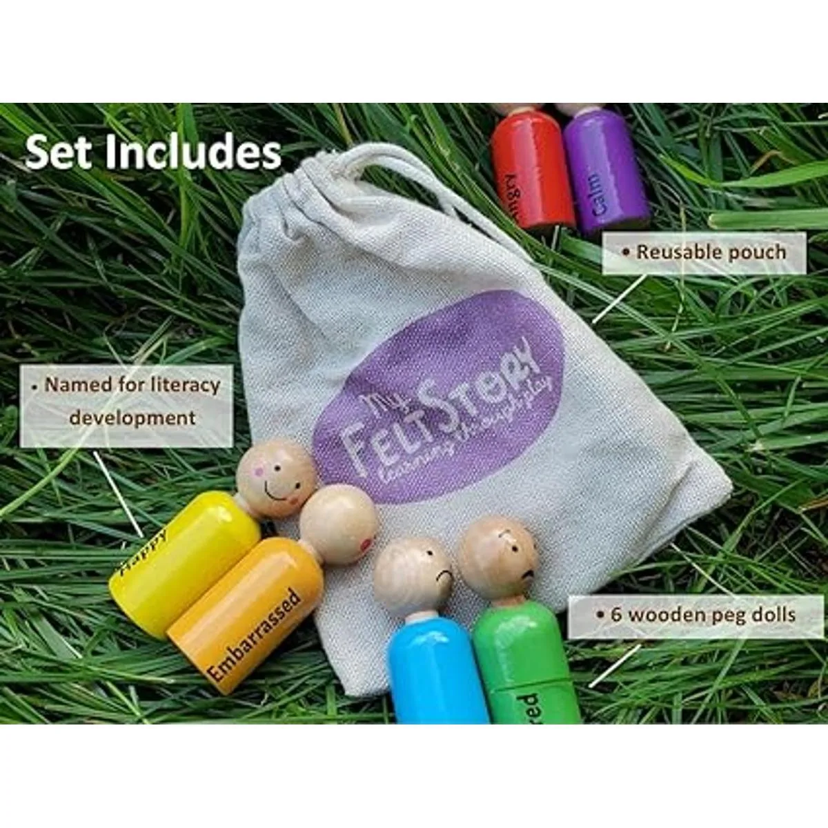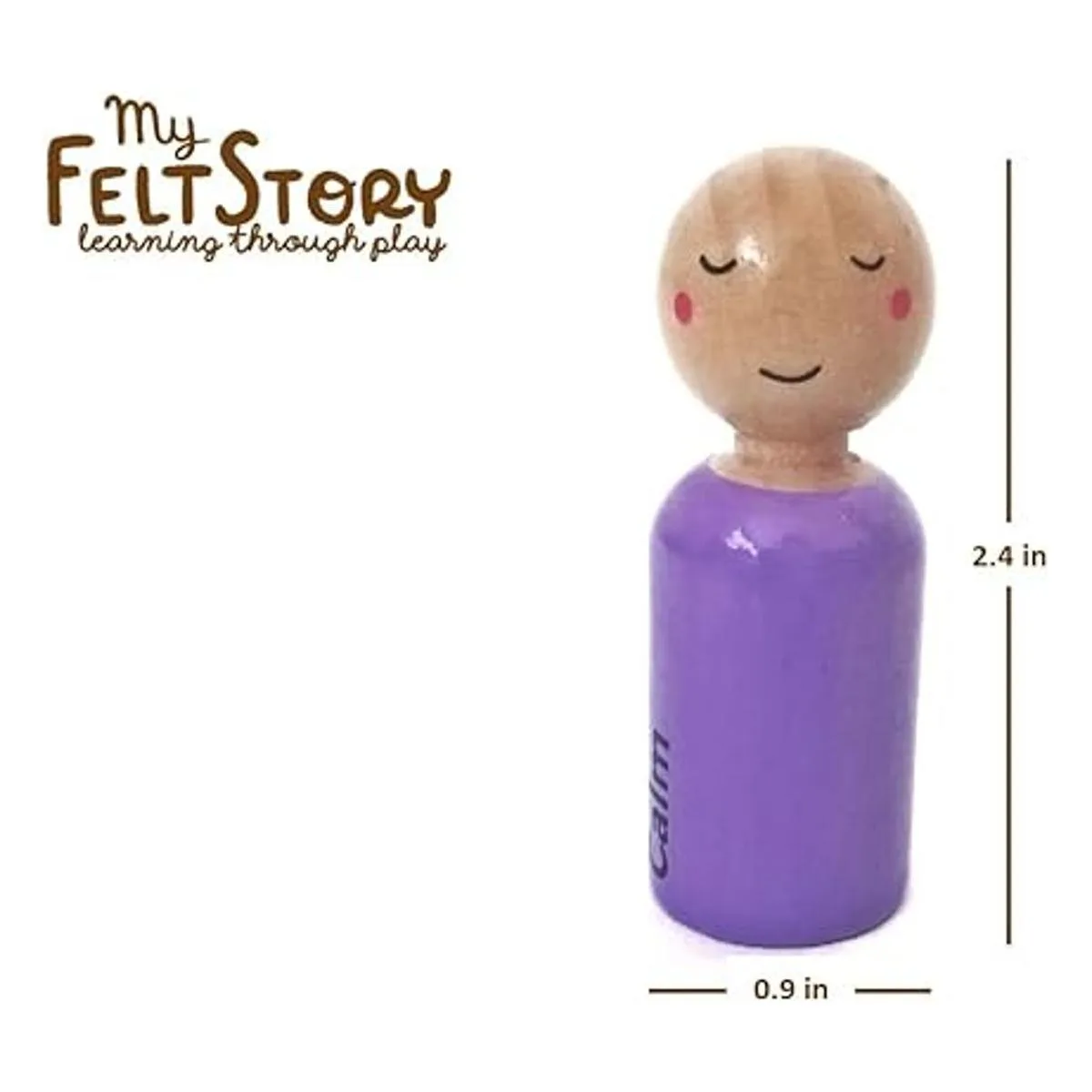 My Felt Story, Muñecas de 6 clavijas de sensación, madera de arcoíris, aprendizaje socialemocional, preescolar Montessori Reggio, figuras de personas emotivas