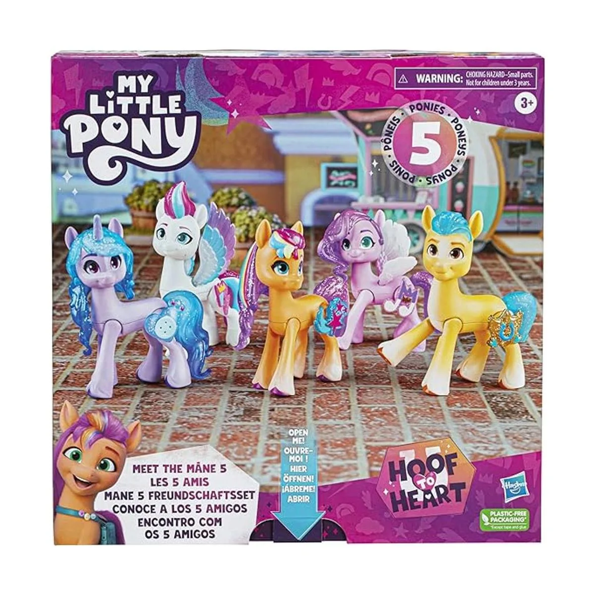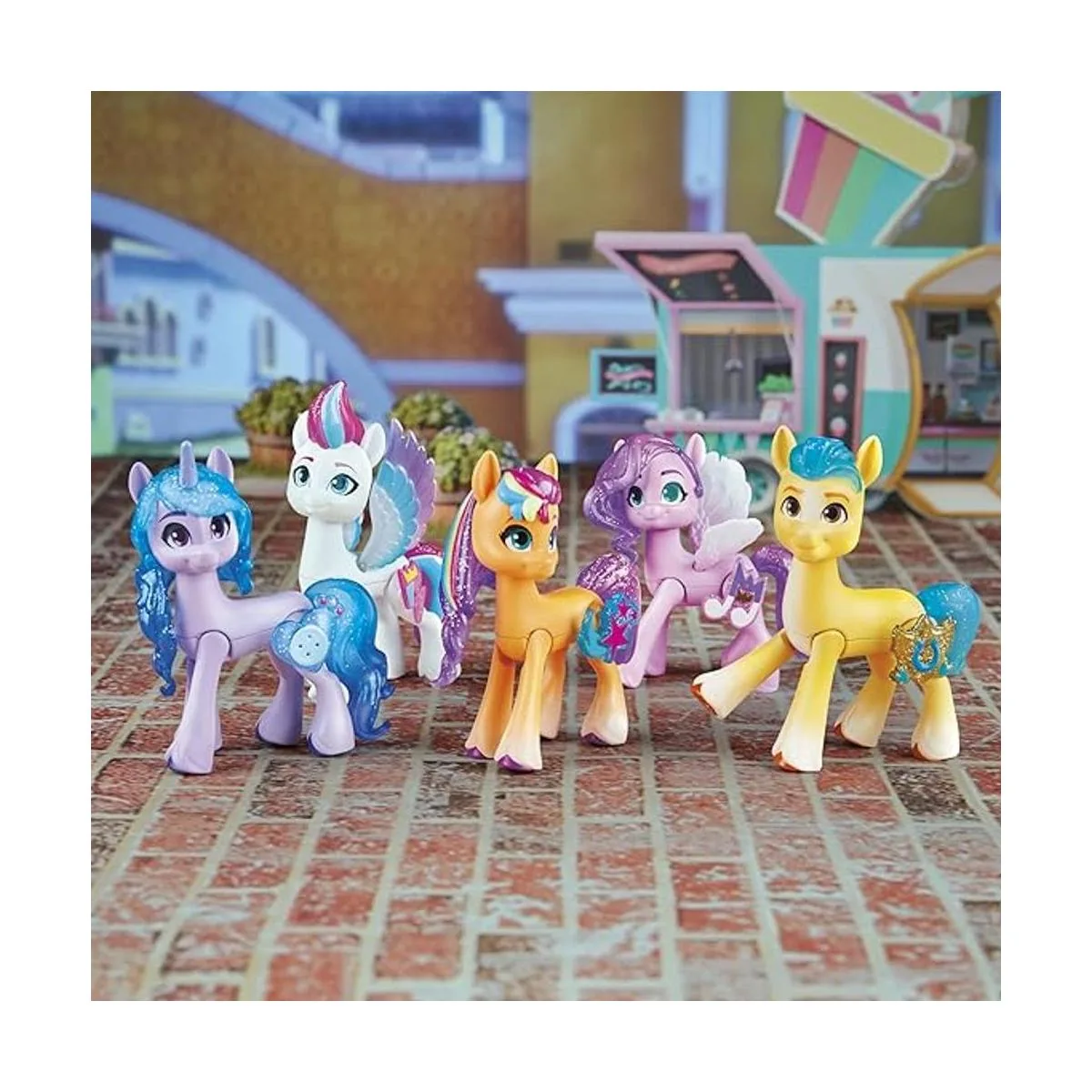 Conoce la melena 5: el paquete de colección viene con 5 personajes favoritos de pony: Sunny Starscout, Princess Pipp Petals, Izzy Moonbow, Zipp Storm y Hitch Trailblazer.