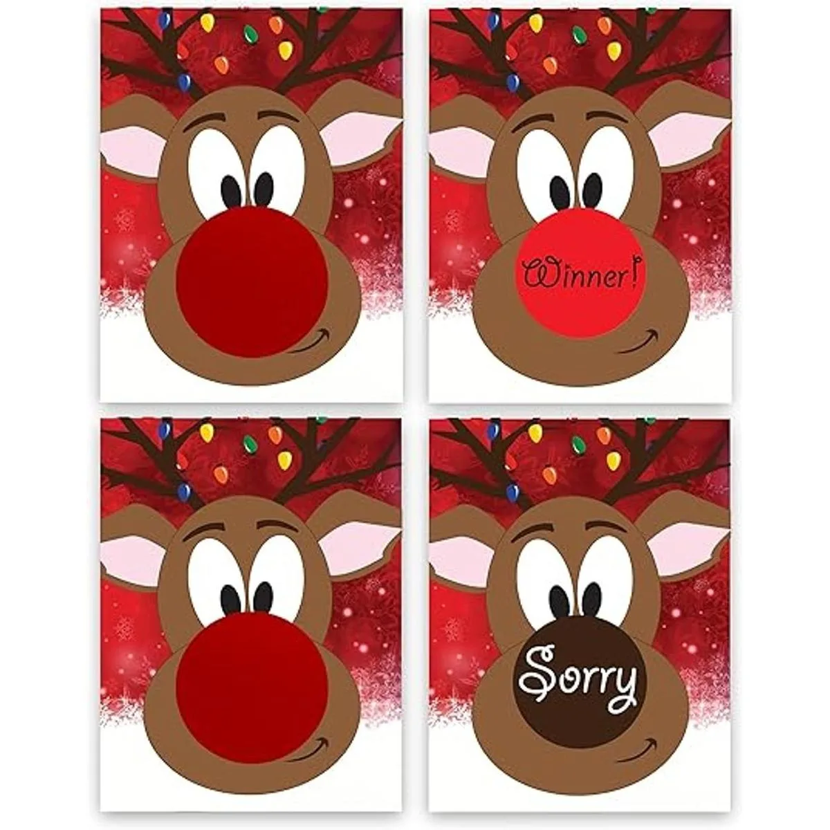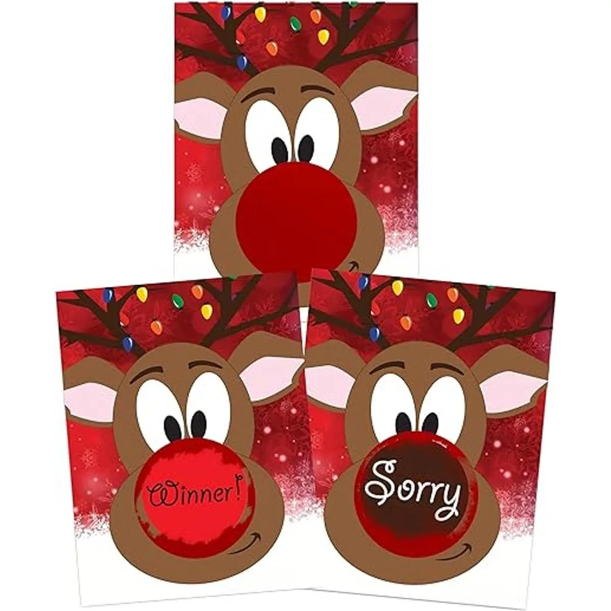 My Scratch Offs Rudolph Cartas de juego de raspar con diseño de reno de nariz roja para Navidad familiar con elefante blanco, 26 cartas con 2 ganadores