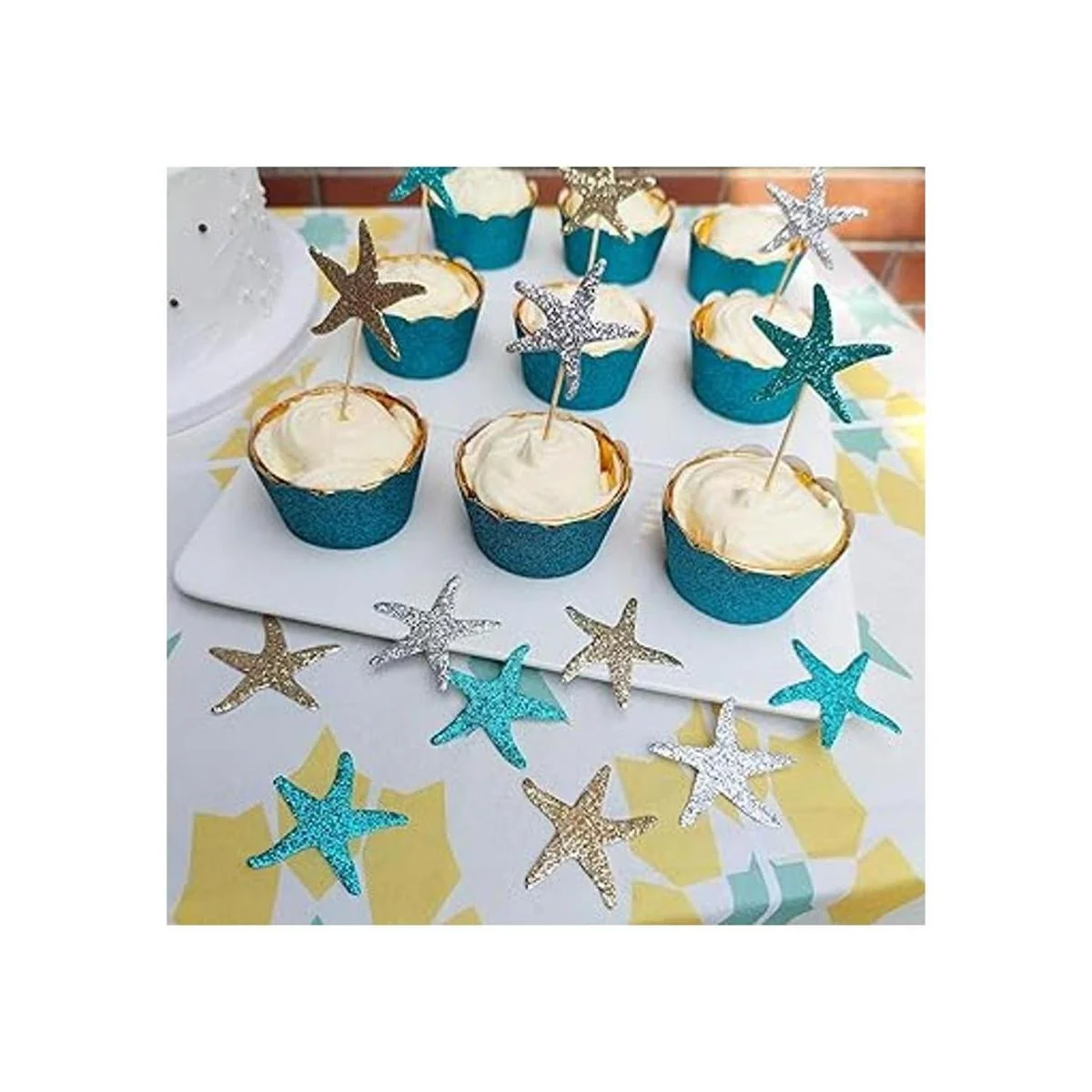 Mybbshower Confeti de estrellas de mar con purpurina para mesa de fiesta de cumpleaños, decoración de playa, fiesta temática de boda, manualidades, paquete de 150 unidades plata dorada azulada