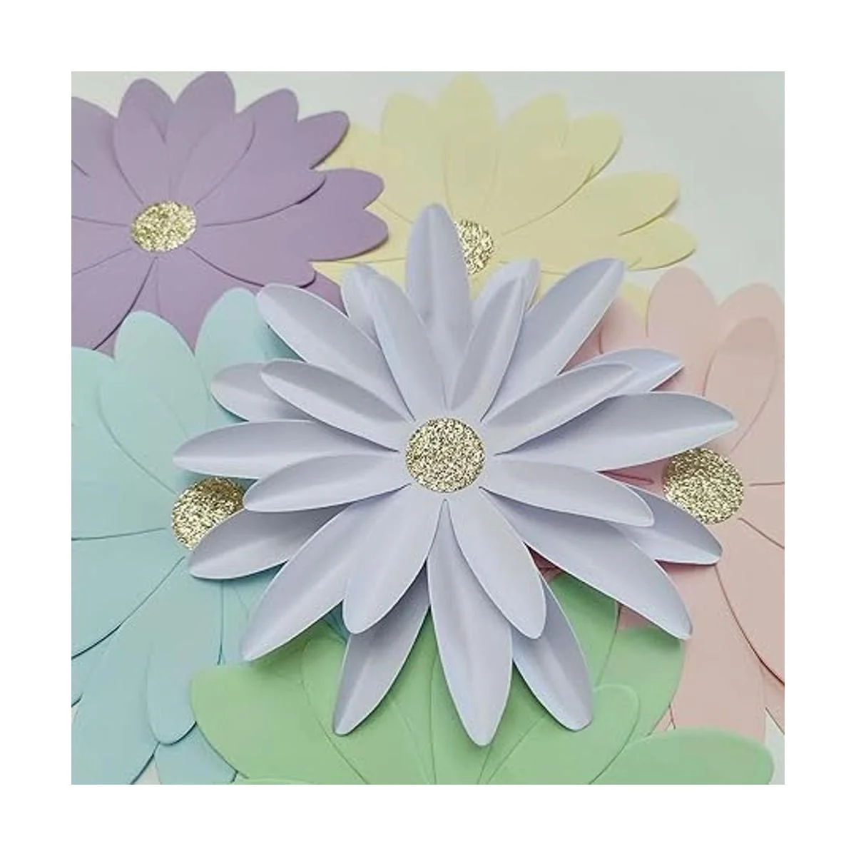 Mybbshower Flores de margaritas de papel pastel de 8 pulgadas para decoración de primavera, telón de fondo floral para fiestas, decoración de cumpleaños para baby shower, paquete de 6