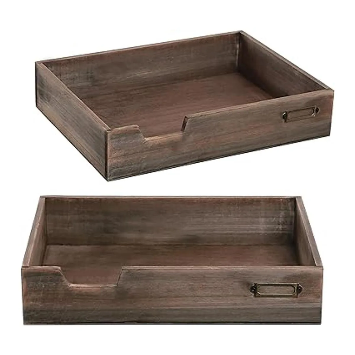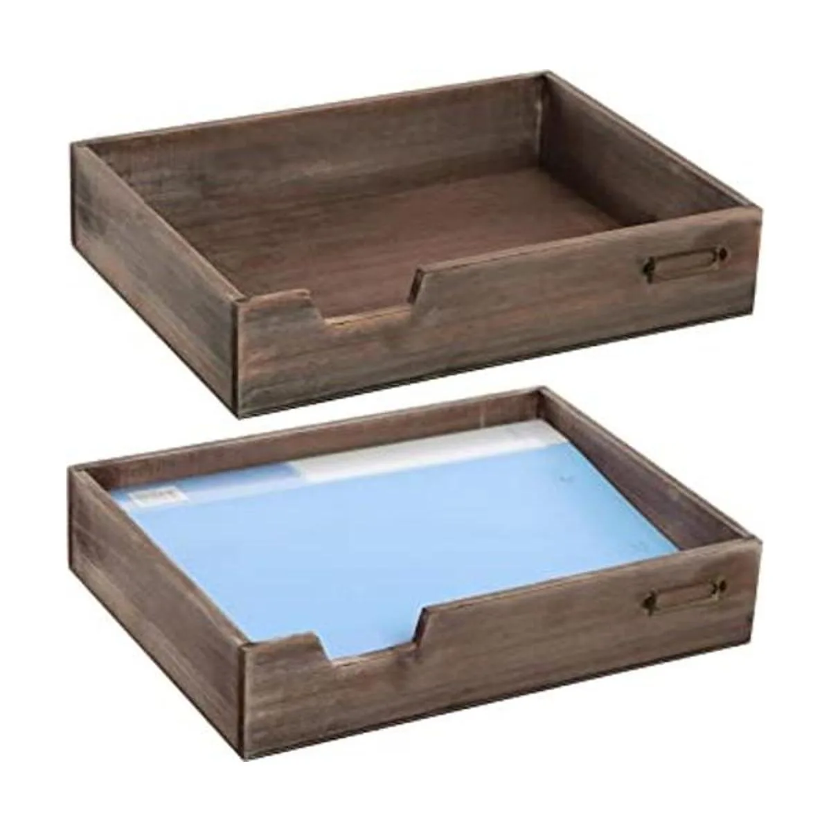MyGift Juego de 2 bandejas de papel para documentos de escritorio de oficina apilables con acabado envejecido vintage de madera marrón