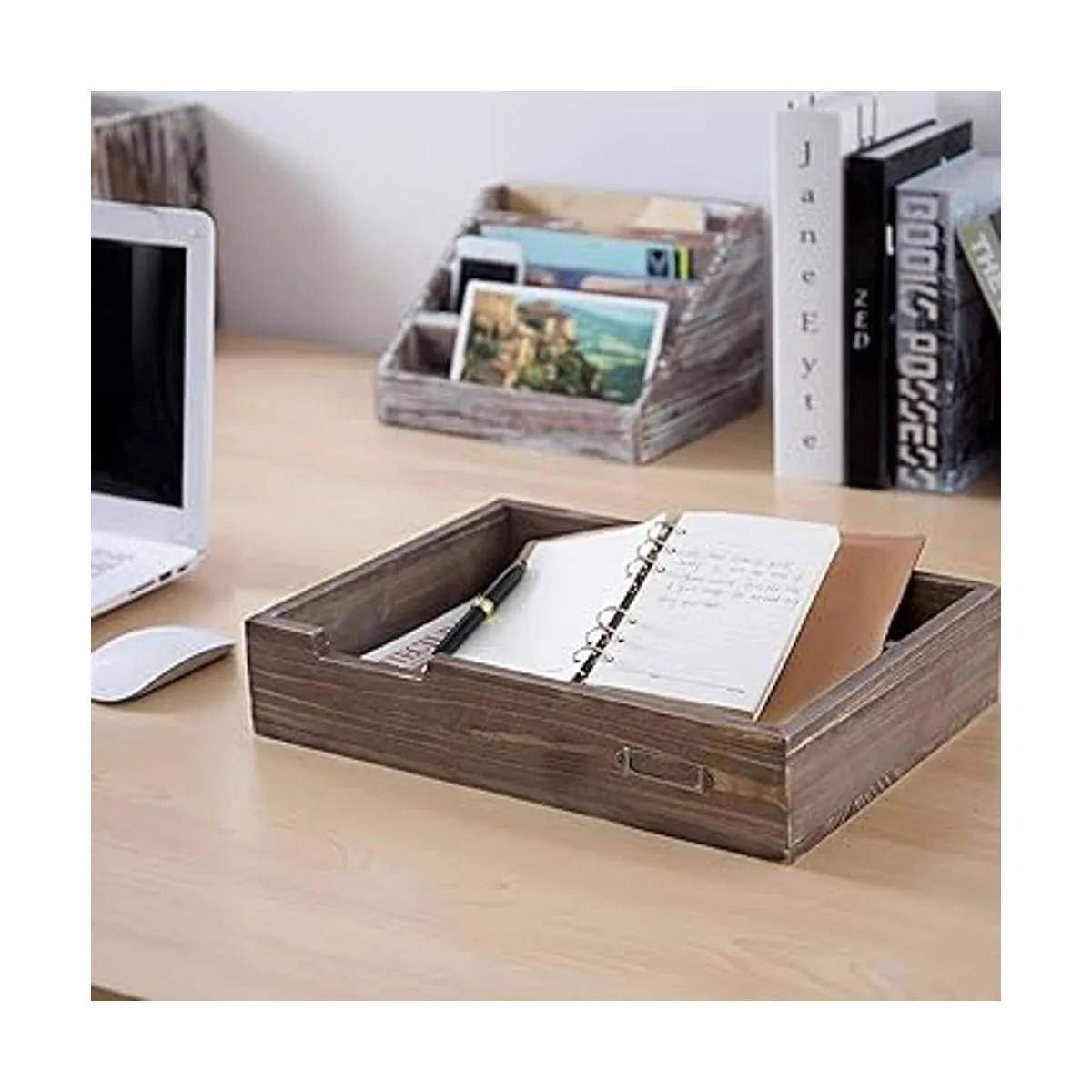Organizador de archivos de madera multiusos con acabado envejecido natural, perfecto para guardar documentos, archivos, carpetas y revistas