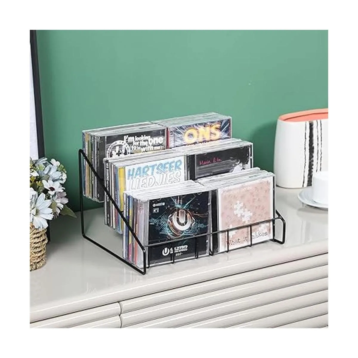 MyGift Moderno soporte de almacenamiento de CD de alambre de metal negro mate, soporte organizador de 3 niveles