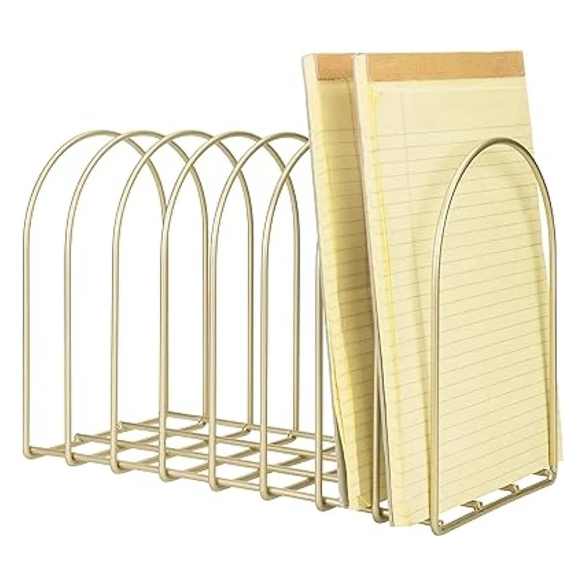 MyGift Soporte grande para documentos de escritorio, organizador de carpetas de archivo de alambre de metal de latón con 8 ranuras y diseño de arco