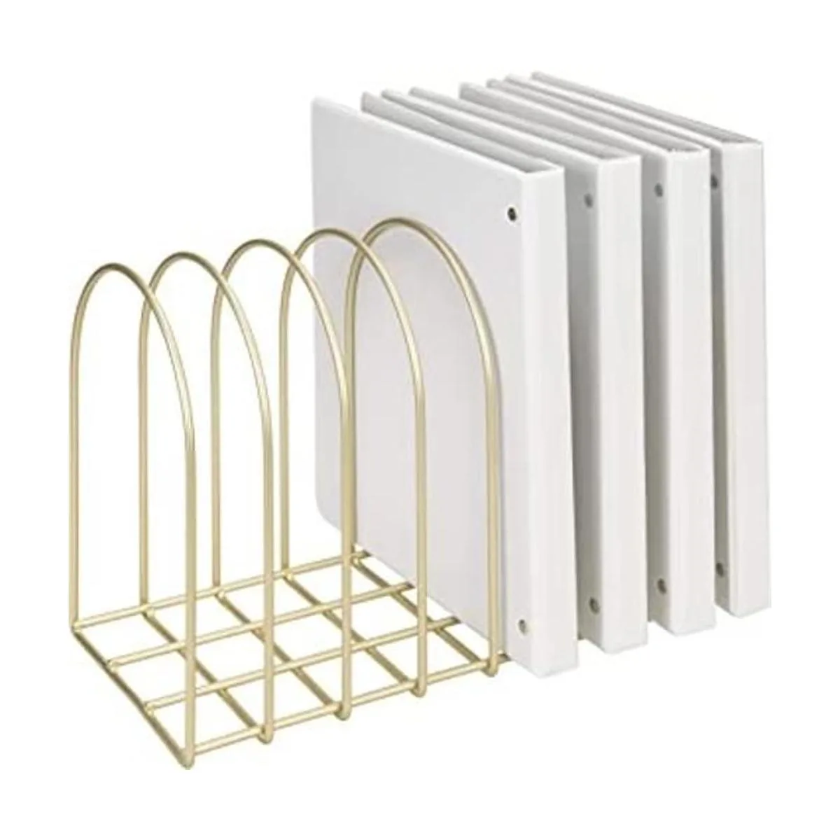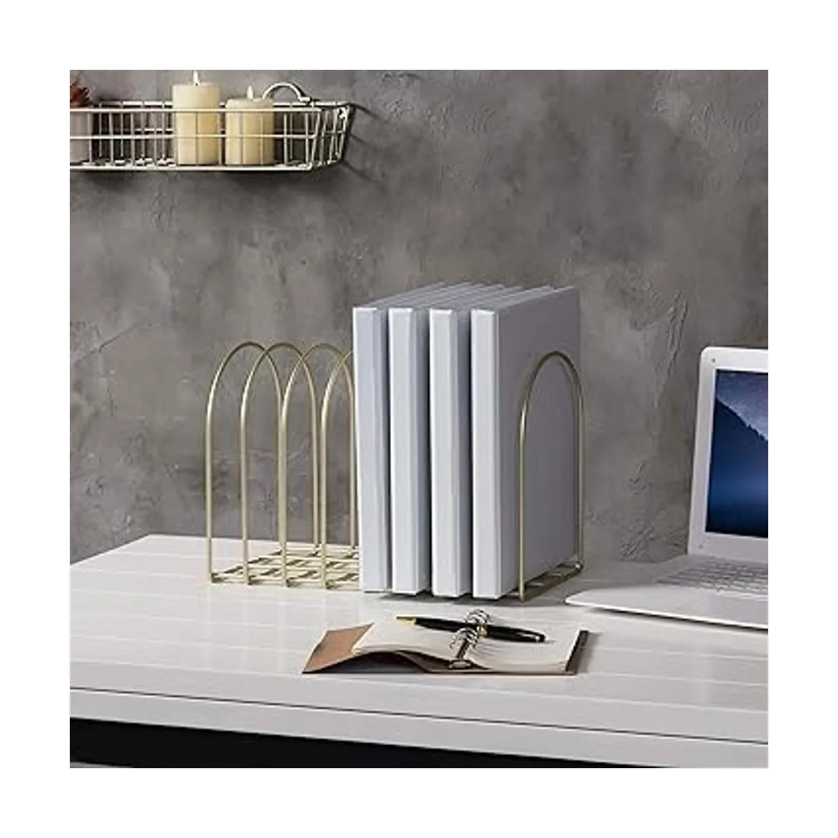 Organizador de libros y archivos de escritorio con diseño arqueado de latón para uso en tu hogar u oficina