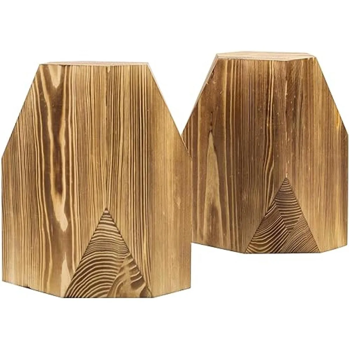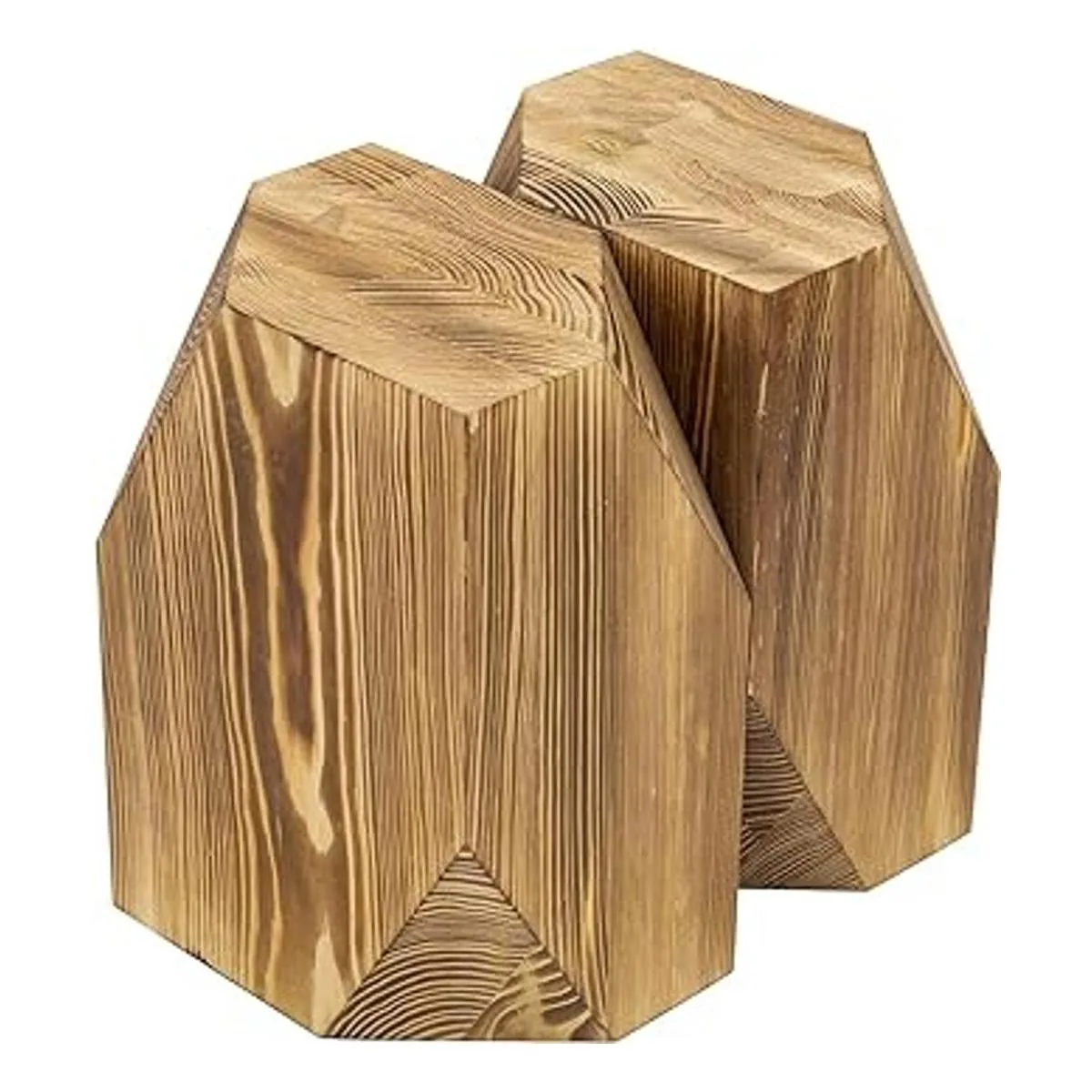 Juego de 2 sujetalibros de madera maciza con diseño geométrico de tronco de árbol