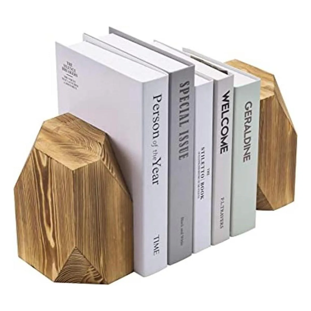 MyGift Sujetalibros de madera maciza con estilo geométrico 2 unidades