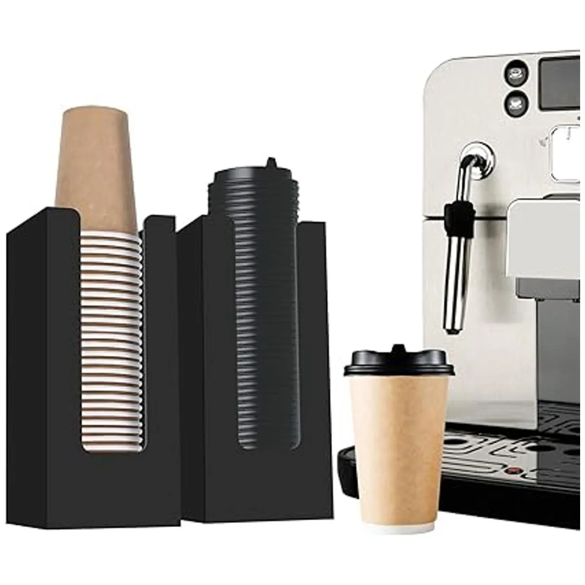 MYITYARD Dispensador de tazas de café, taza de papel desechable y soporte de tapa, organizador de encimera acrílico para el hogar, cafetería, restaurante, oficina, sala de descanso, negro