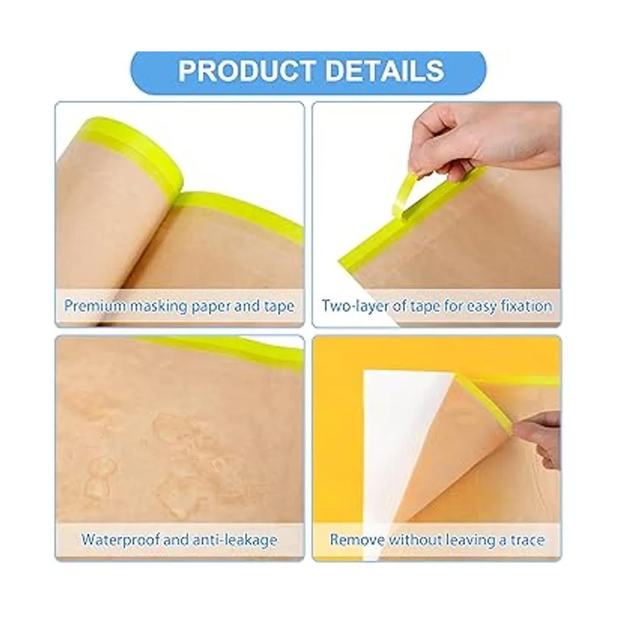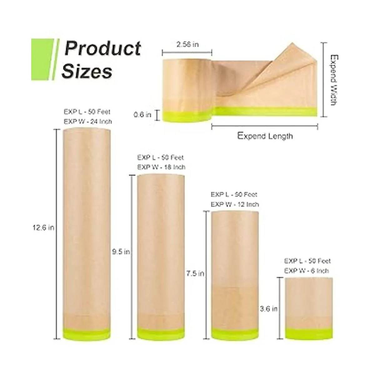 MyLifeUNIT Papel de enmascarar, rollo de papel de pintura automotriz con cinta, varios tamaños de cinta y cortina impermeable para cubrir la protección de pintura cada rollo de 50 pies, 4 rollos