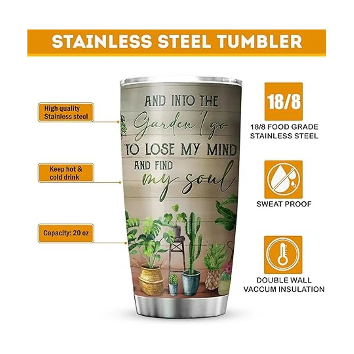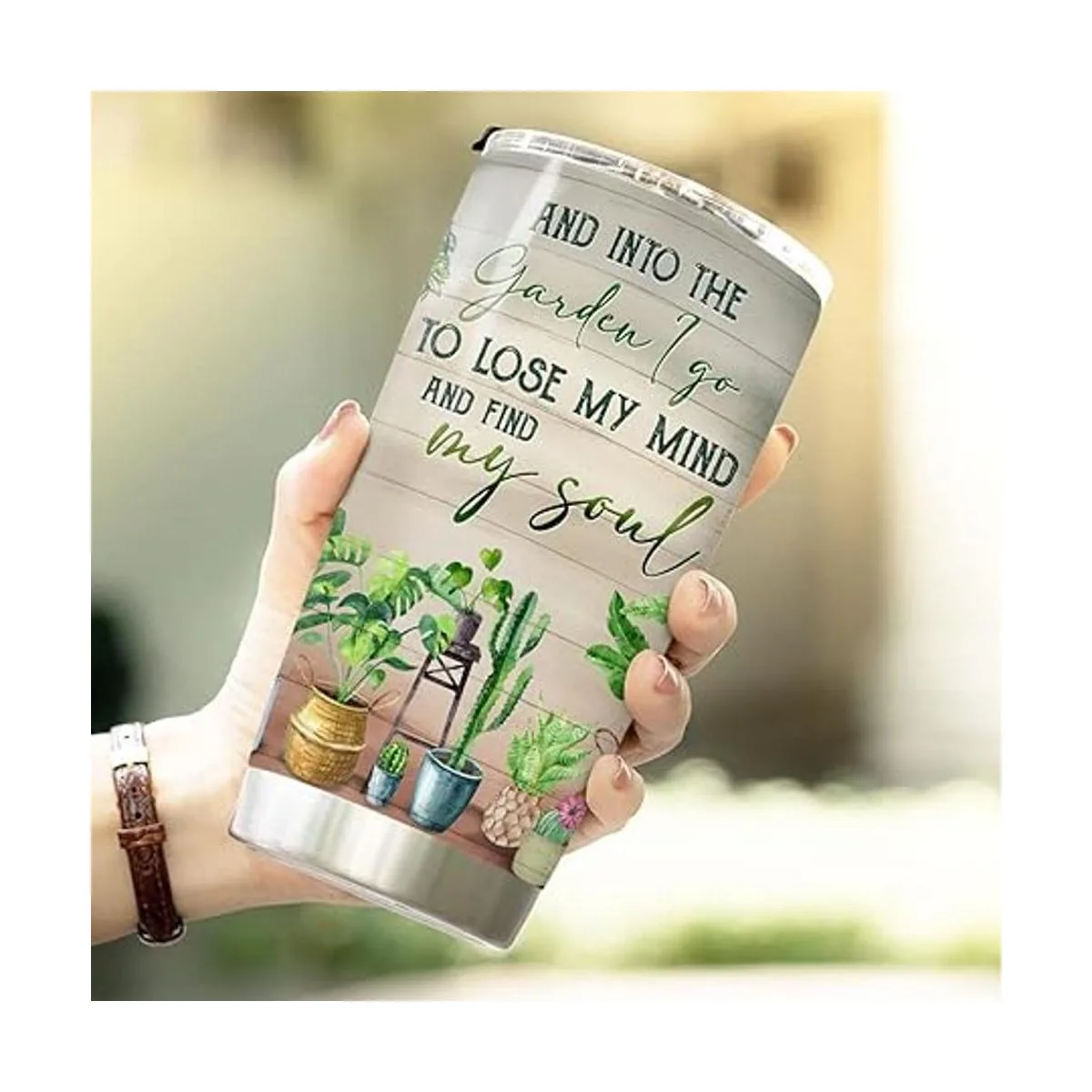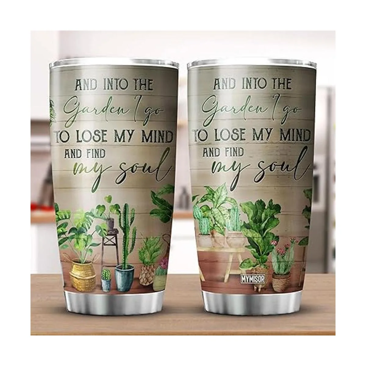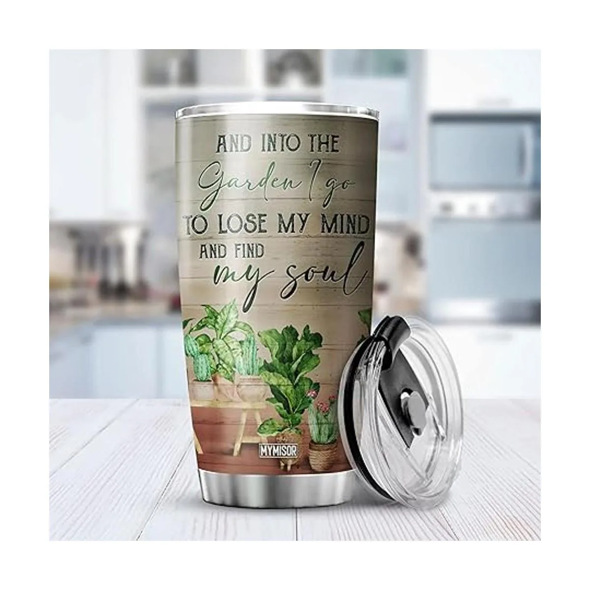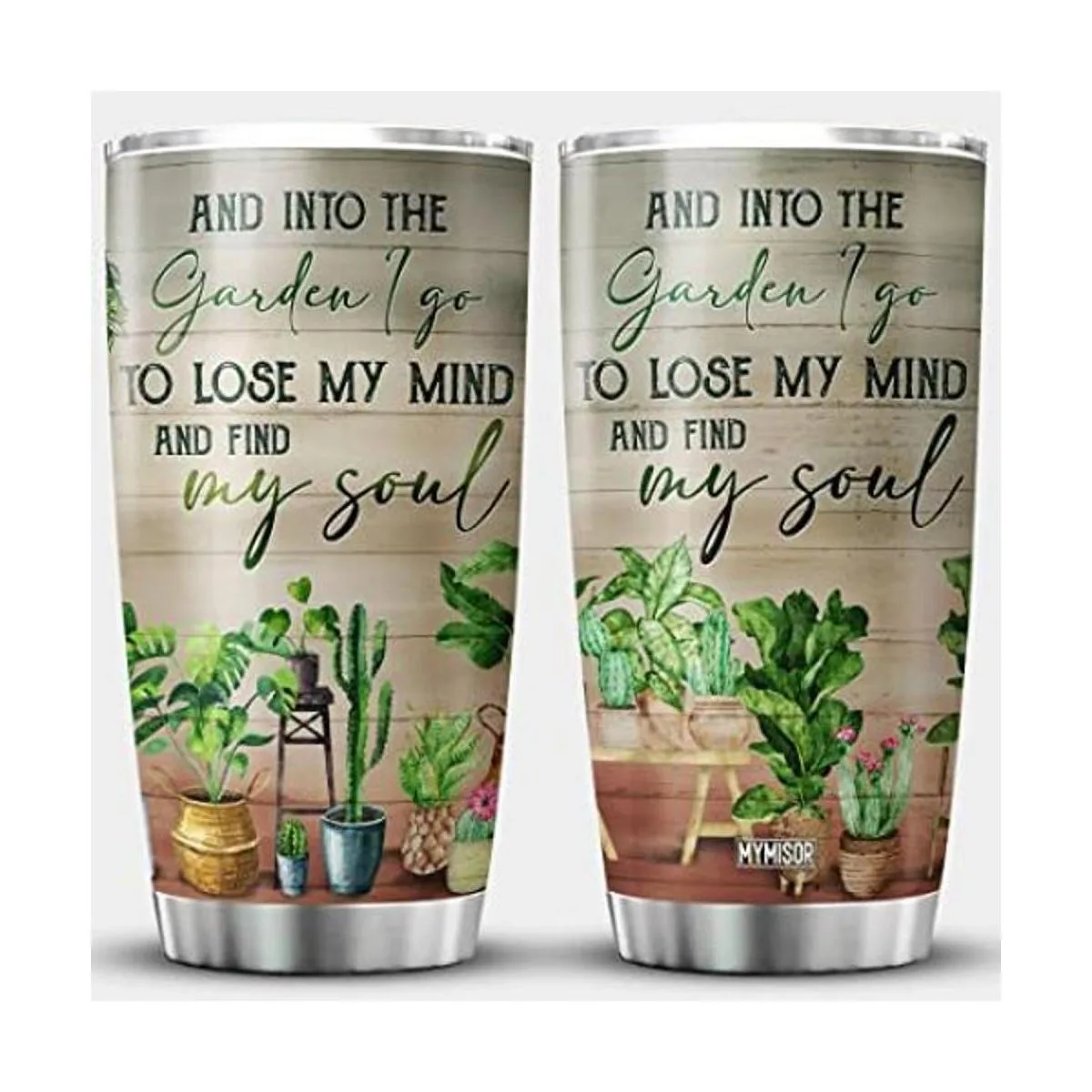 MYMISOR And Into The Garden I Go To Lose My Mind And Find My Soul Vaso de jardinería con tapa, 20 onzas, regalo de jardinero para mujeres, amantes de las plantas, vaso aislado de acero inoxidable