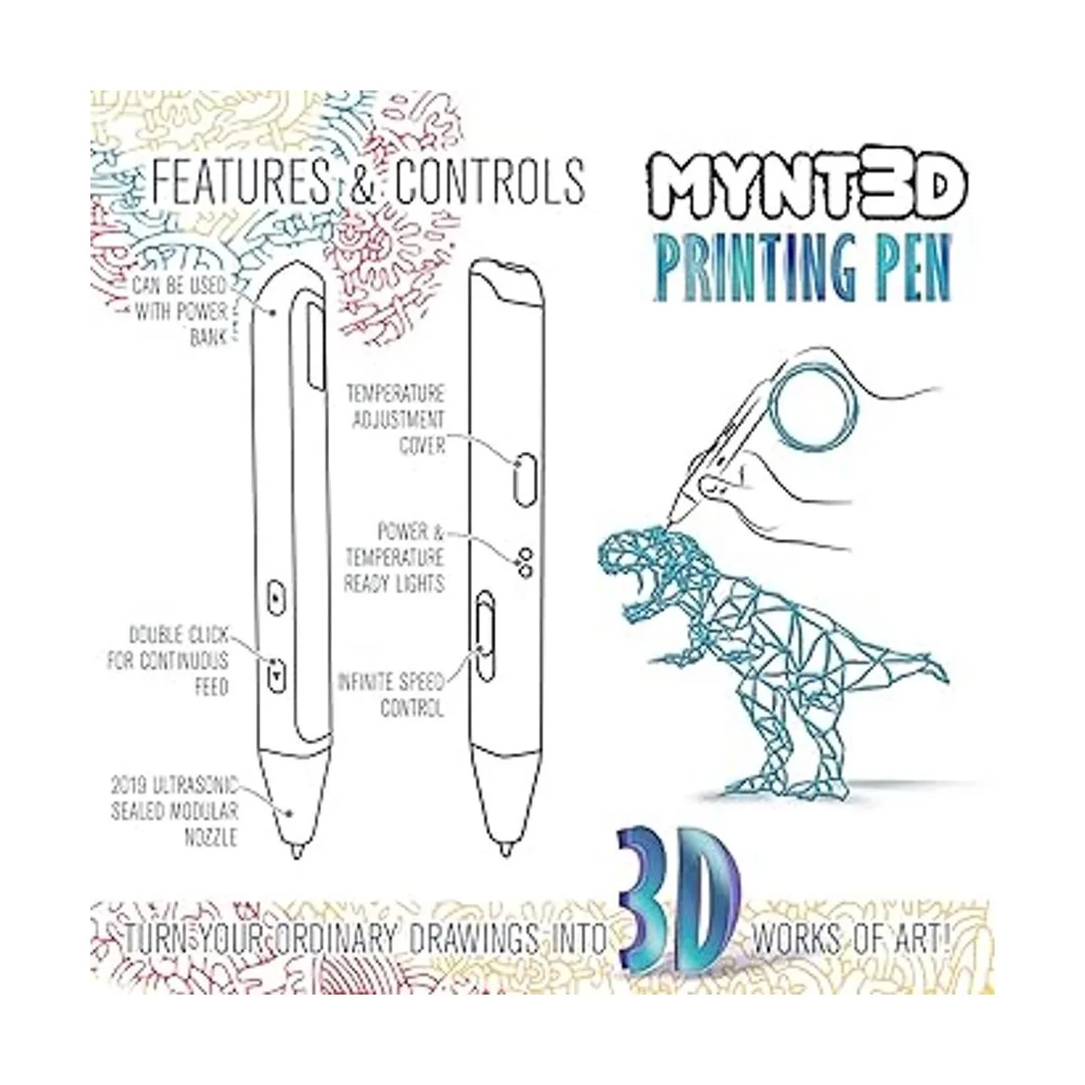MYNT3D Bolígrafo Super 3D, bolígrafo de impresión 3D compatible con ABS y PLA de 0.069 in