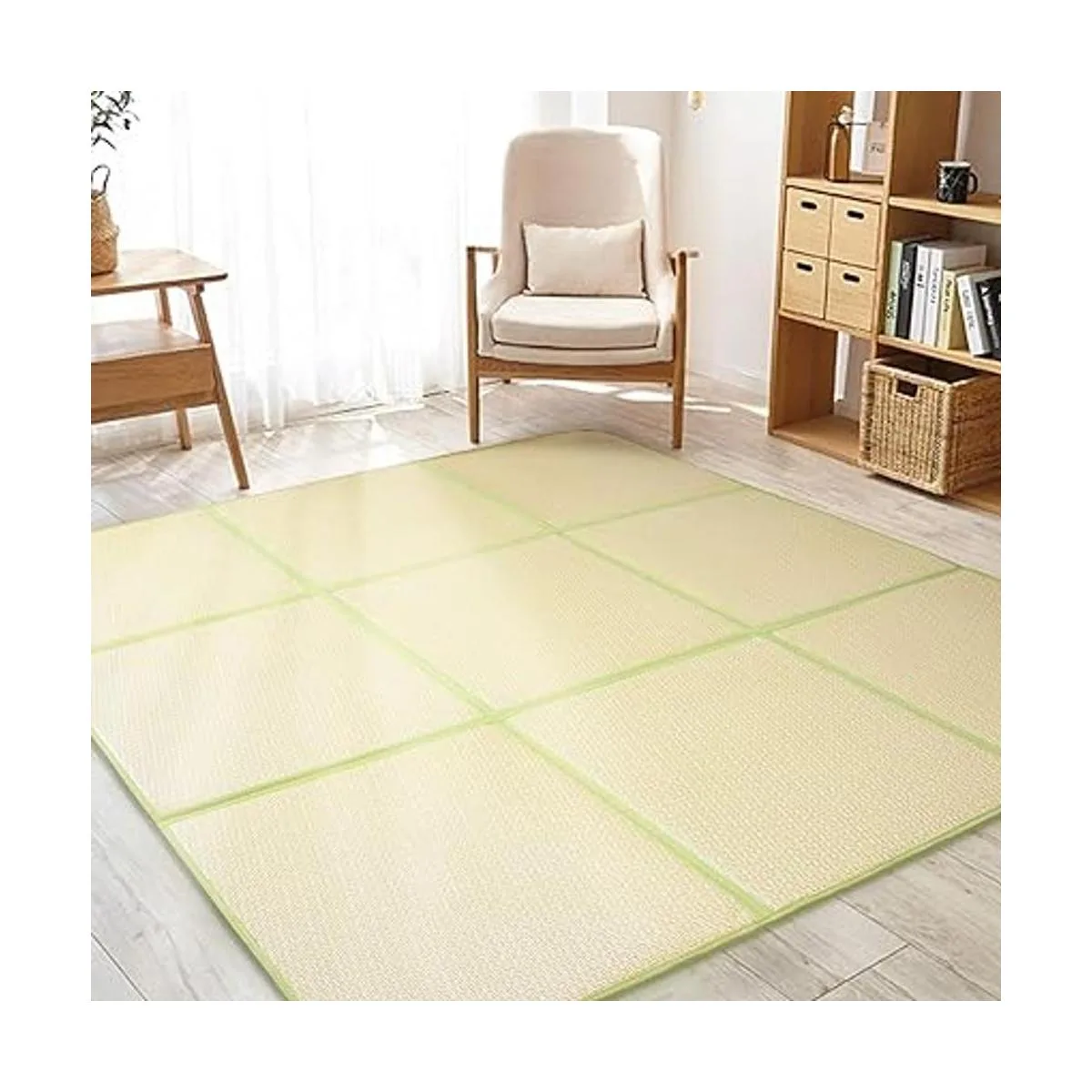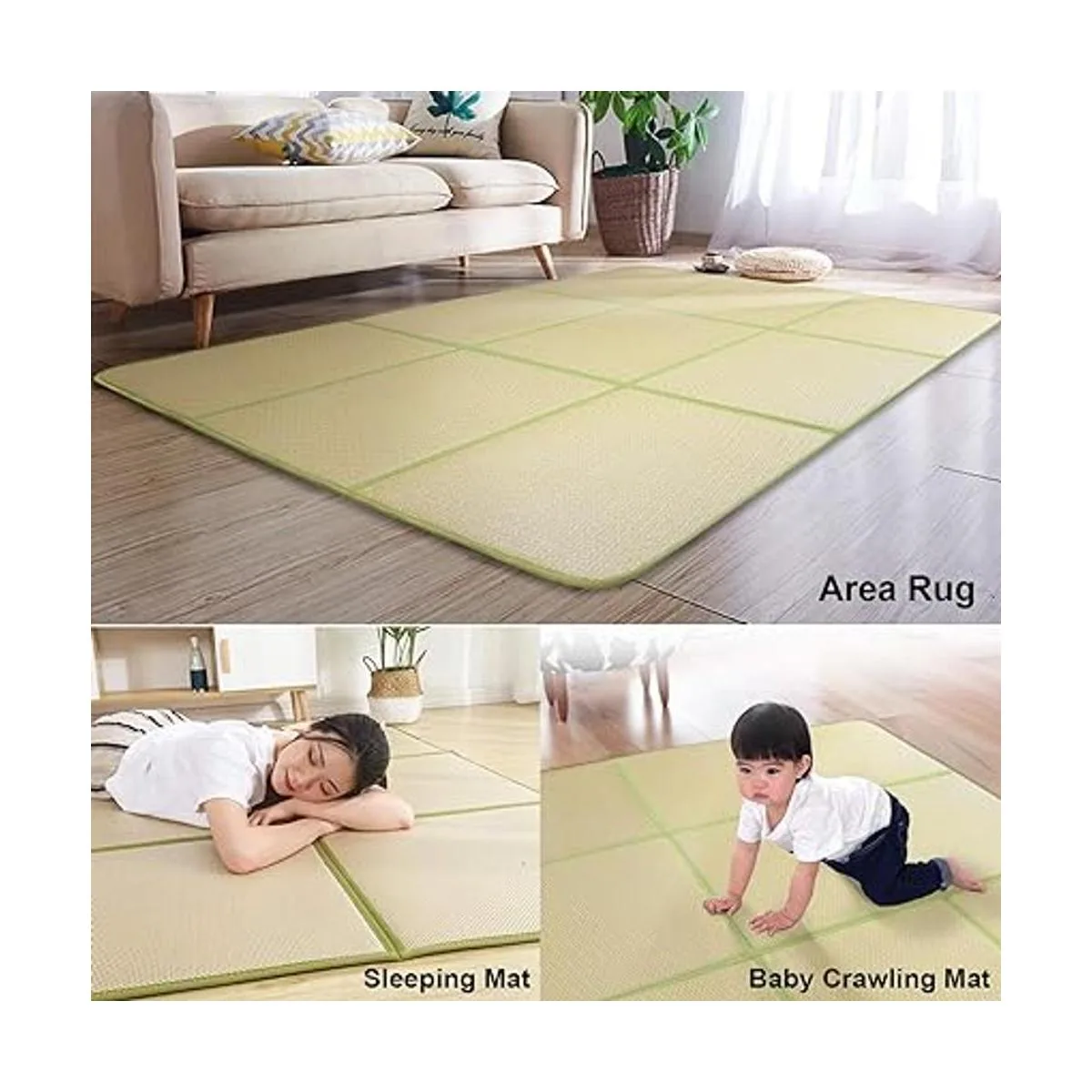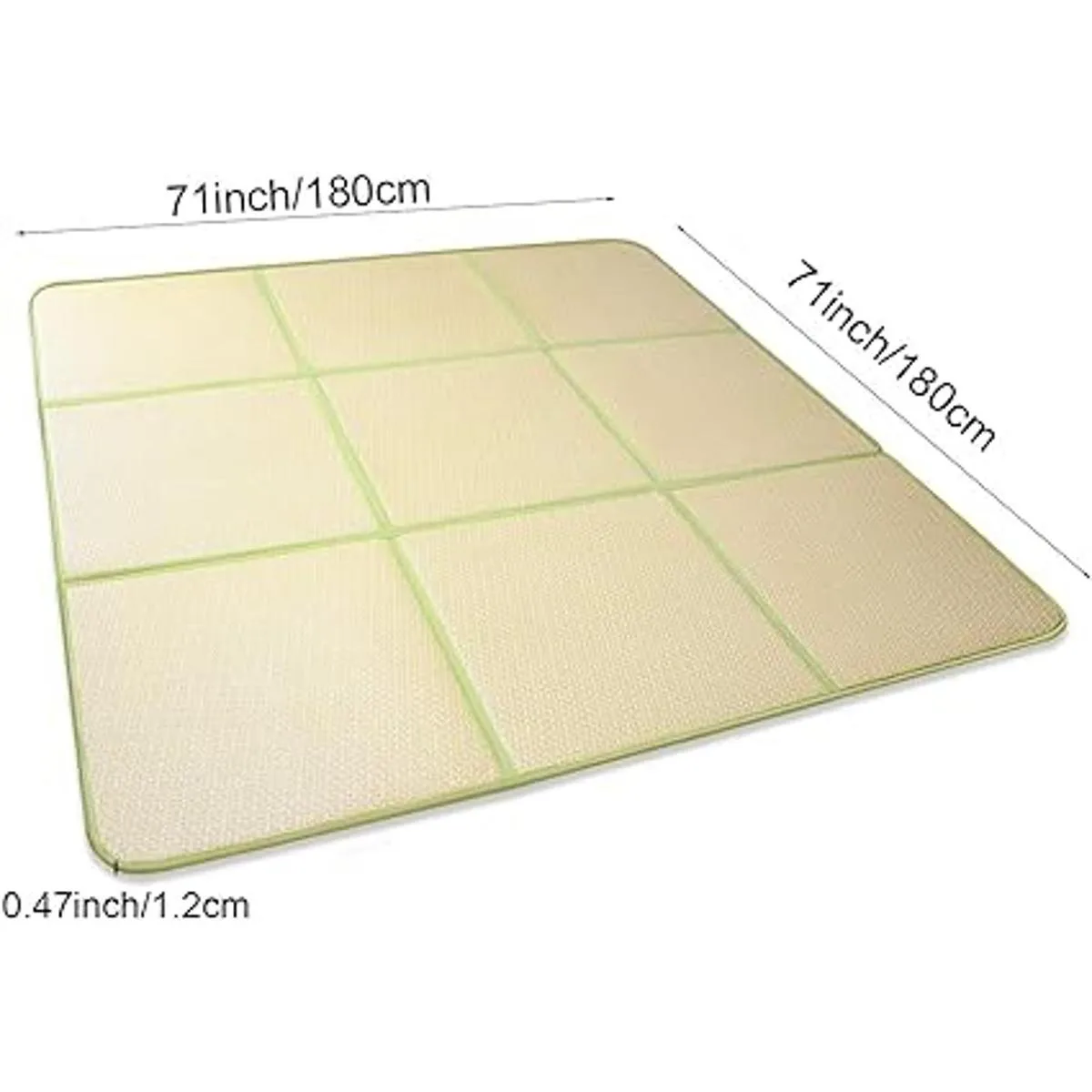 MYOYAY Tapete japonés de ratán de 71 x 71 pulgadas, de 0.47 pulgadas de grosor, de espuma viscoelástica, transpirable, antideslizante, para gatear, sala de estar, dormitorio, con bolsa de almacenamiento
