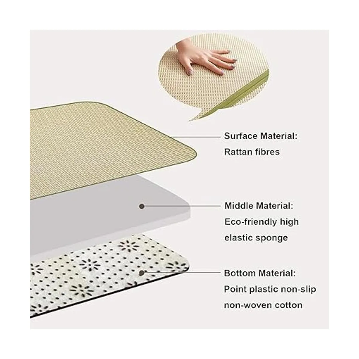 Material de alta calidad: el material de la superficie de la alfombrilla de ratán es de fibras de ratán naturales, muy suave, el interior está relleno de esponja ecológica de alta elasticidad, suave y cómoda.