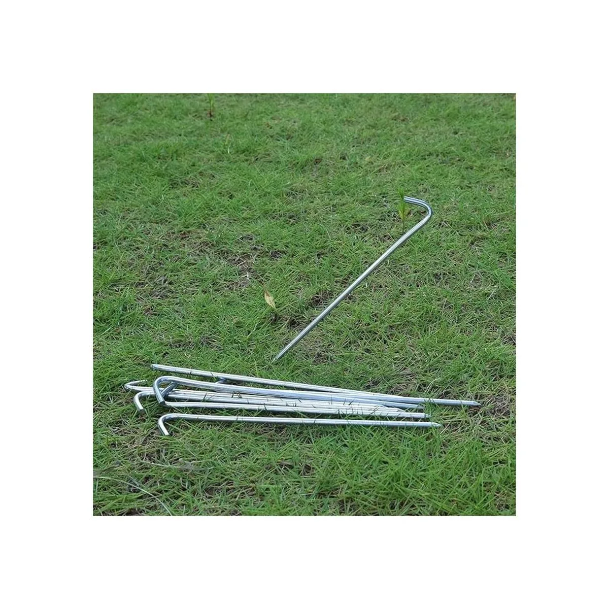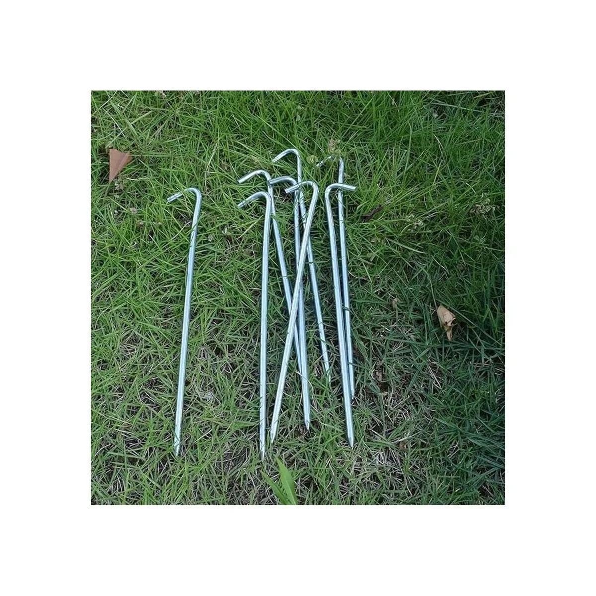 Multiusos: las clavijas de césped son perfectas para anclar carpas, toldos, lonas, redes de jardín, cenadores, redes de fútbol, sábanas, toldos y cortavientos. Ideal para garantizar decoraciones navideñas al aire libre, las estacas inflables evitan que tus decoraciones al aire libre Navidad se caigan o vuelen. Las estacas de metal para tienda de campaña se pueden utilizar para embellecer el medio ambiente y proteger las vallas. Construye refugios para proteger las plantas y verduras de ciervos y otros animales.