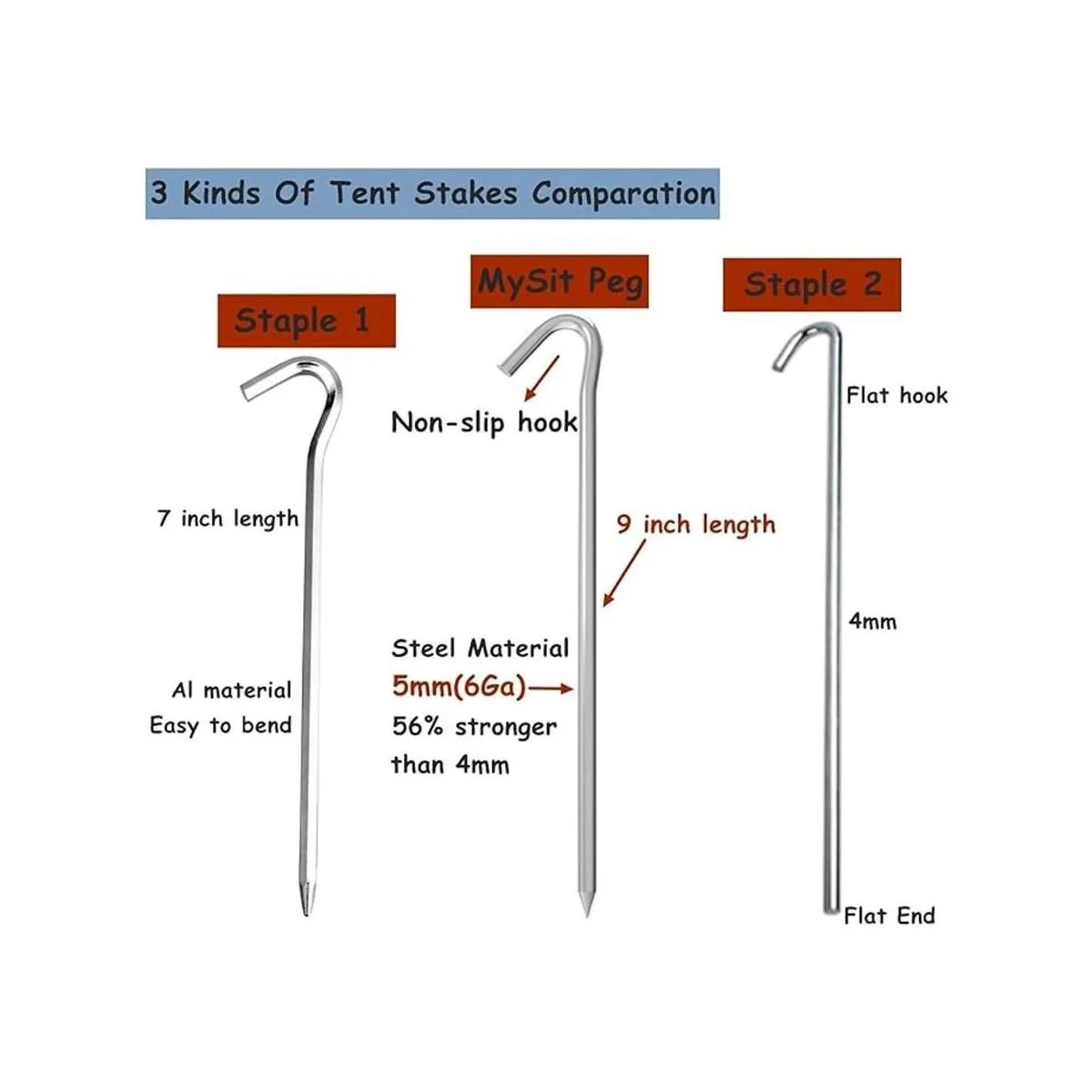 MySit Juego de 30 estacas para tienda de campaña de 9 pulgadas, de metal galvanizado resistente, ganchos para valla de jardín, decoración de Navidad, camping, trampa de acero para patio