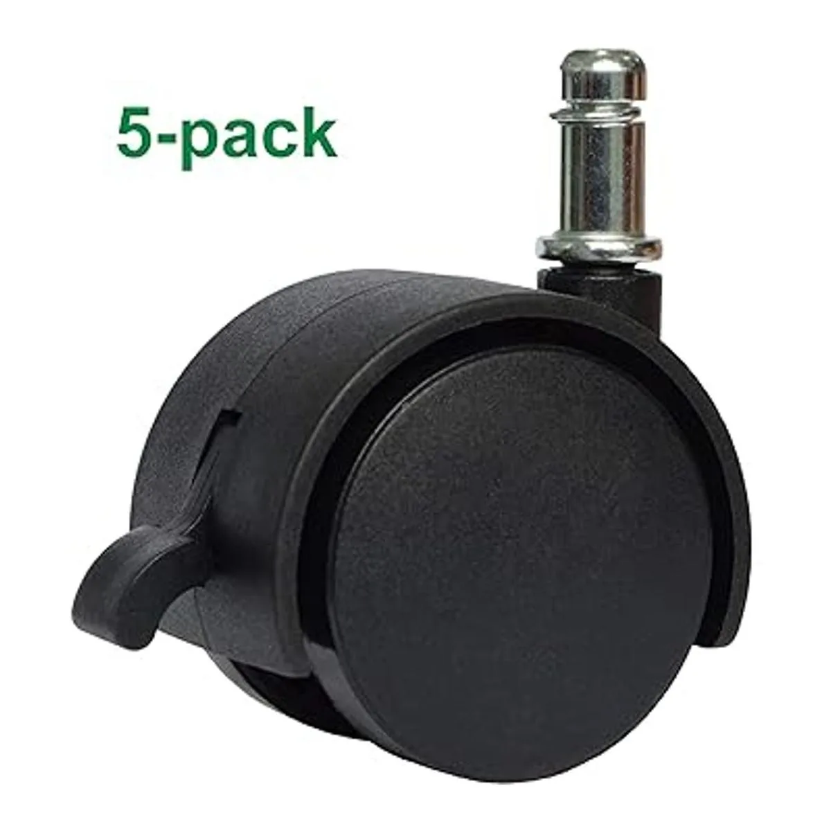 Juego de 5 ruedas de repuesto estándar de 2.0 in con doble freno de bloqueo. Ideal para uso nuevo o de repuesto en sillas, taburetes, mesas y otros muebles.