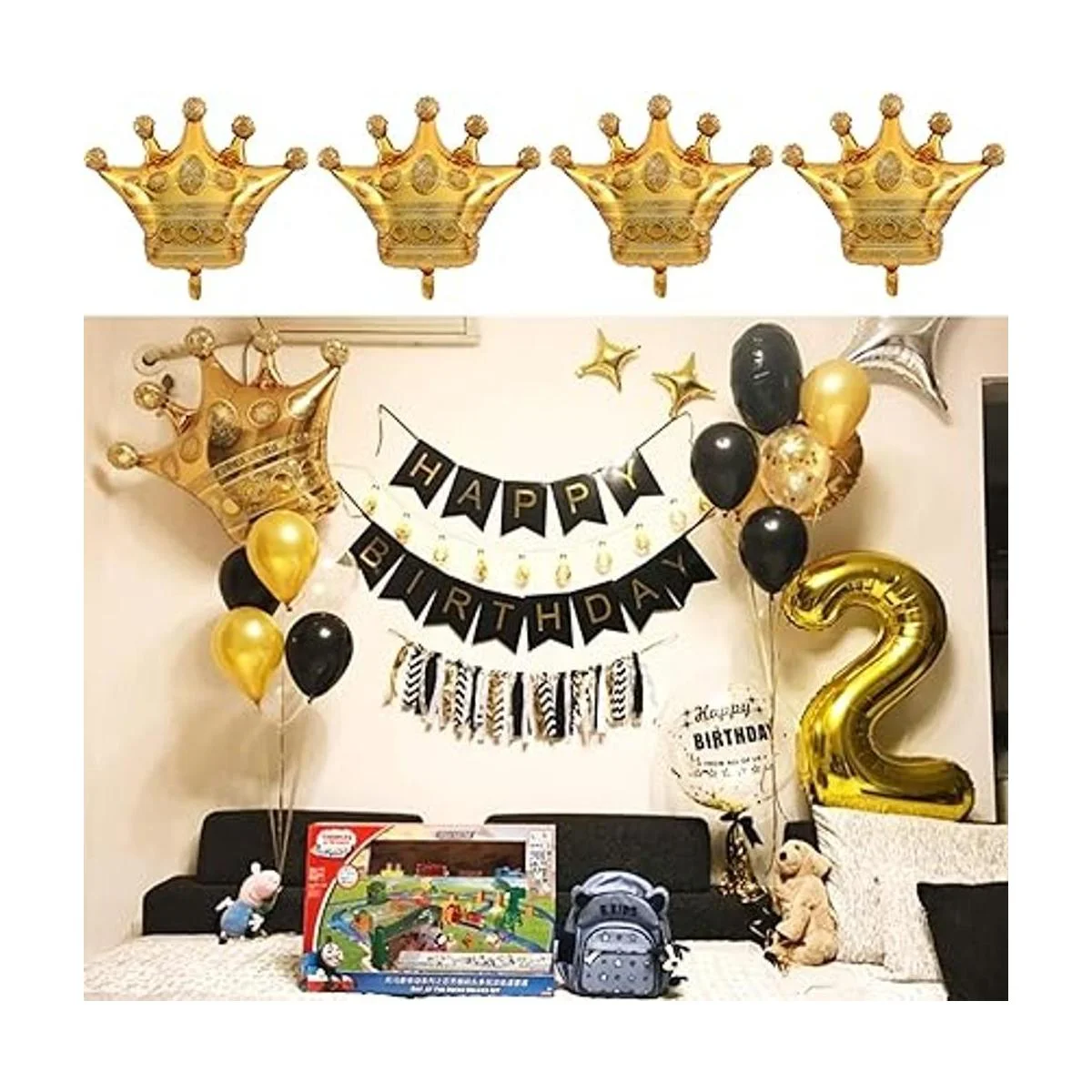Maravillosa decoración: puedes pegar bonitos globos de corona dorada en la pared, ventana o puerta, puedes dejar que los globos se suspendan en el aire, incluso puedes colocarlos en la cama, suelo o mesa, proporcionar a tu fiesta o hogar una buena exhibición.
