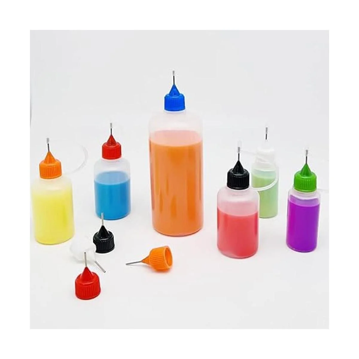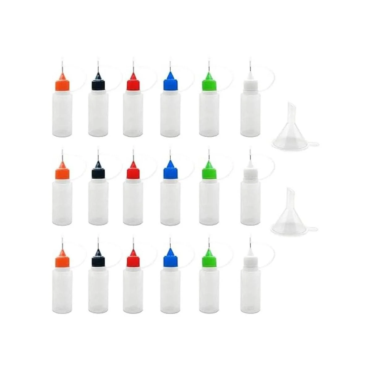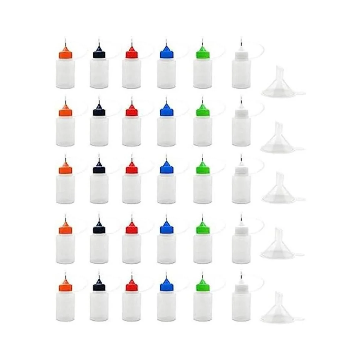 Juego económico: botella aplicadora de 30 puntas, 5 de cada color, 5 mini embudos.