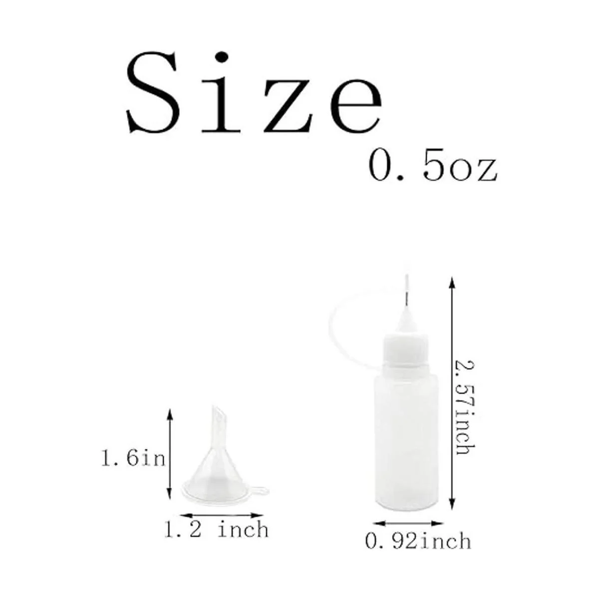 MYYZMY 30 botellas aplicadoras de punta de precisión, botellas de pegamento translúcido de 0.5 onzas, con 5 mini embudos, tapas multicolor