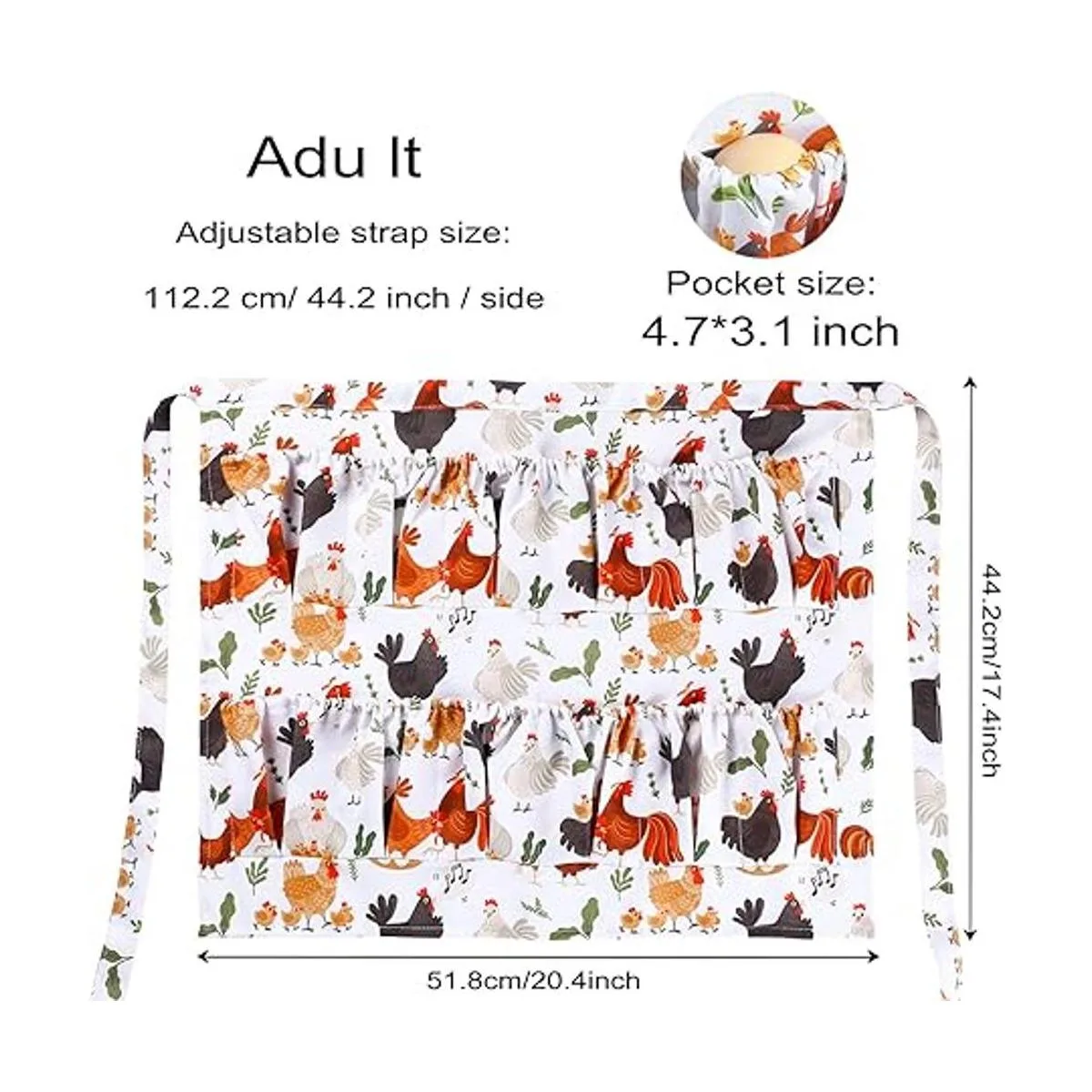 Tamaño: el delantal para recoger huevos tiene 12 bolsillos profundos y correas largas. El tamaño es de 20.4 x 17.4 pulgadas