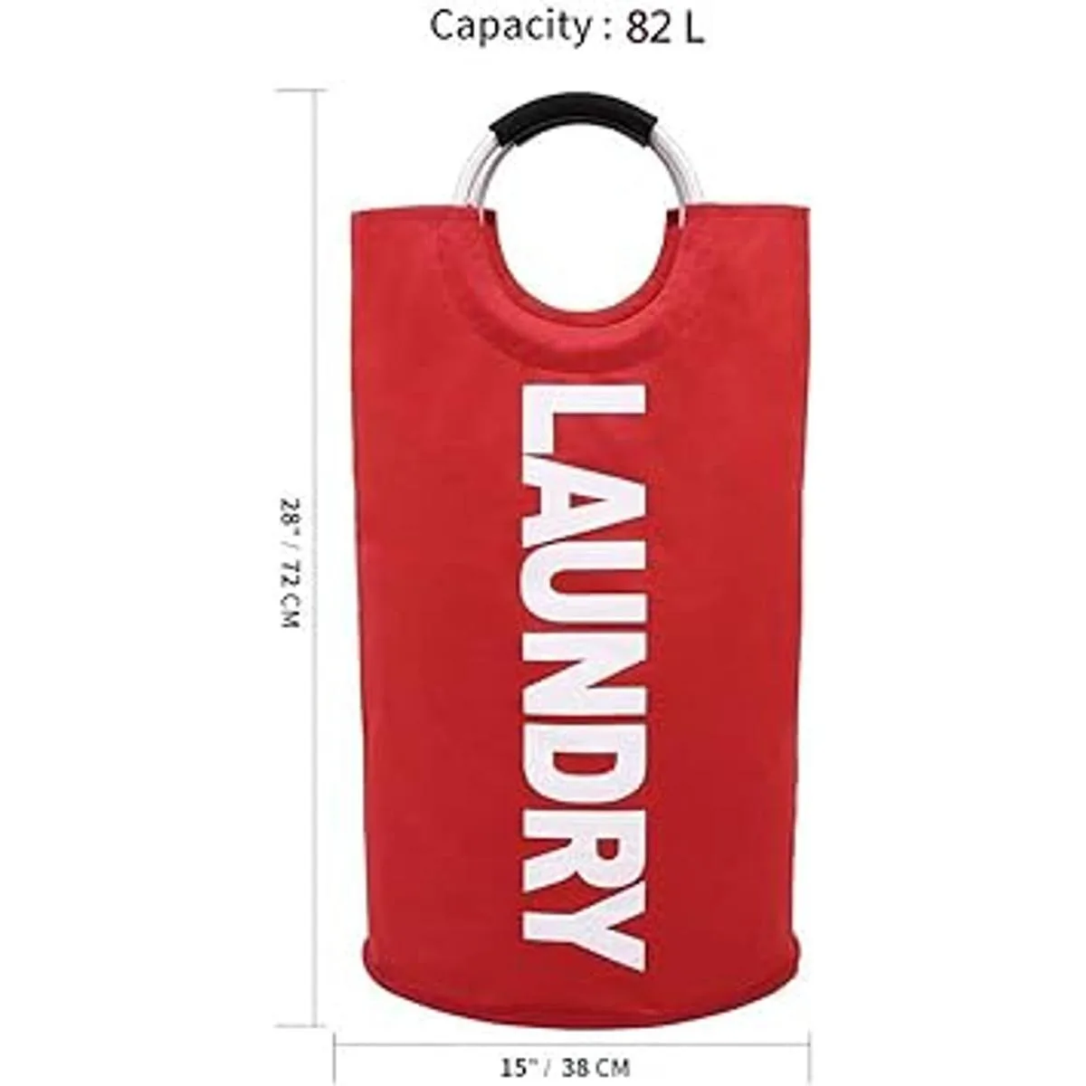 PORTABLE FOLDABLE LAUNDRY BAG The Aluminum handles with soft grip make it comfortable and convenient to carry as a tote bag. Neatly folds to fit in limited storage spaces, luggage and travel storage compartments.