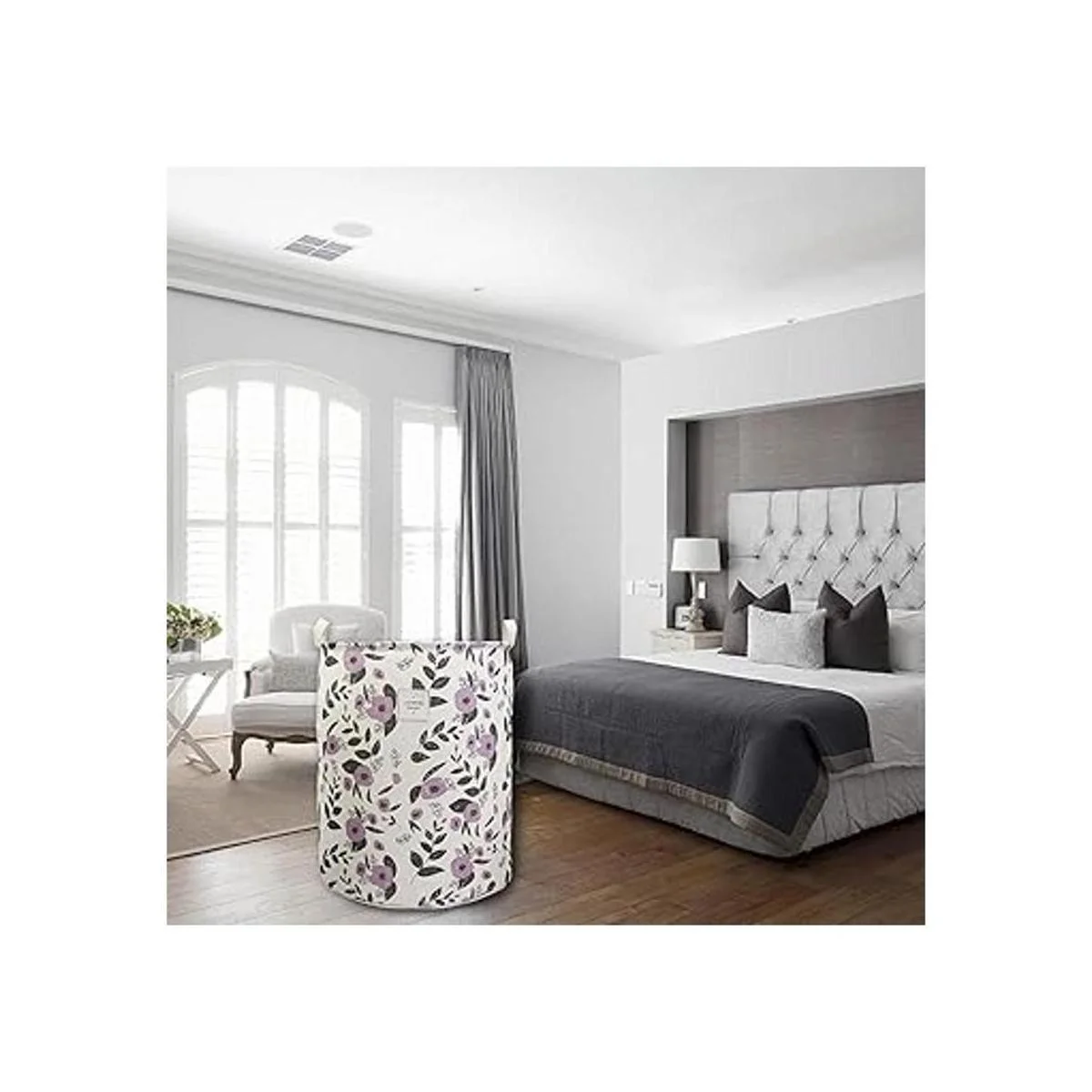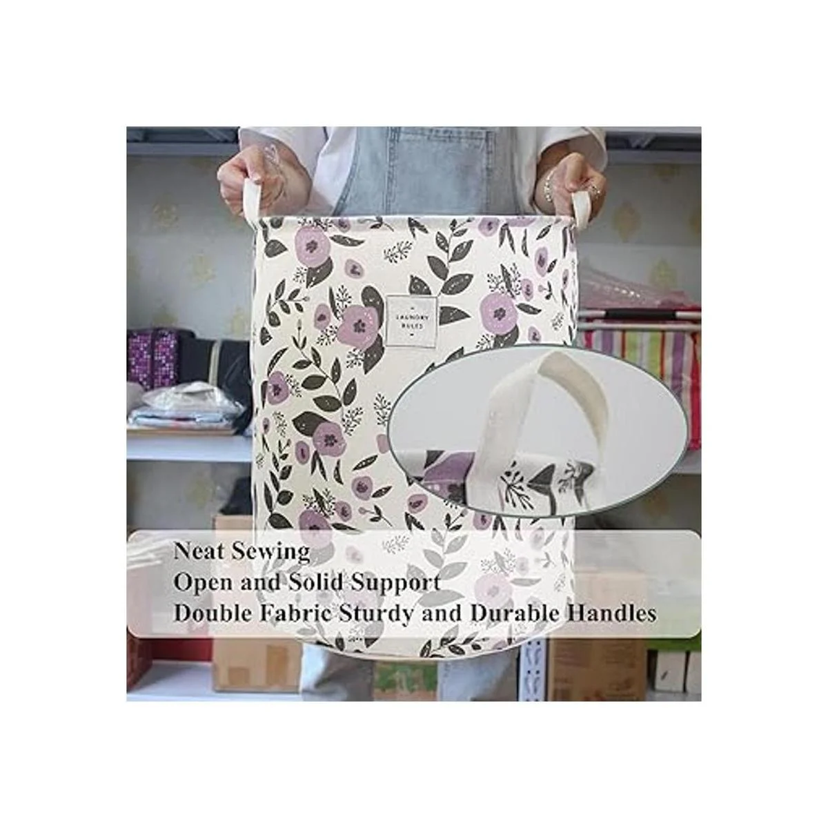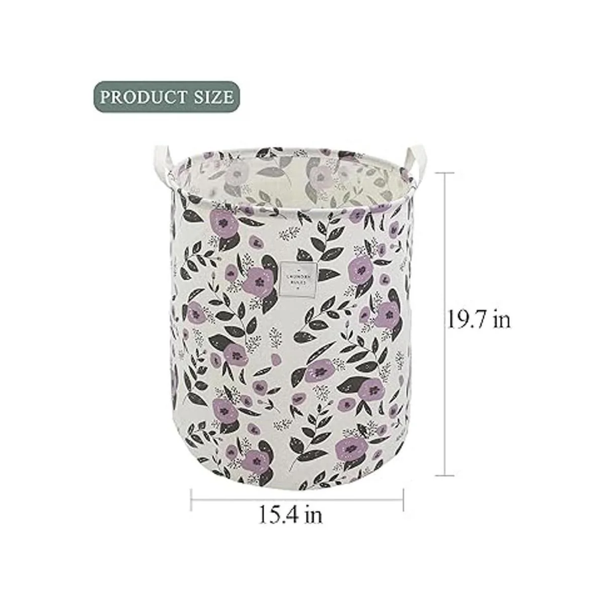 Mziart Cesta plegable para lavandería, cesta grande de lavandería con impresión floral para bebés y niñas, juguetes y niños, organizador de ropa, contenedor plegable de almacenamiento de lona impermeable con asas morado