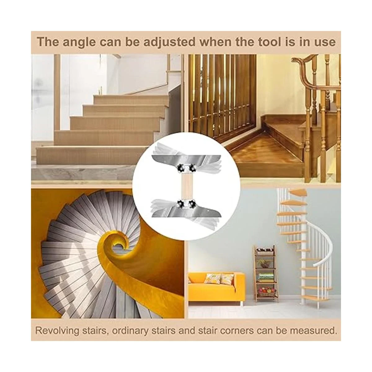 NAACOO Herramienta de plantilla de banda de rodadura de escaleras, plantilla de banda de rodadura de escaleras, herramienta de medición de escaleras, plantilla de escalera, herramienta de medición de banda de rodadura de escalera con cinta métrica, adecuada para escaleras, elevadores y divisiones plateado