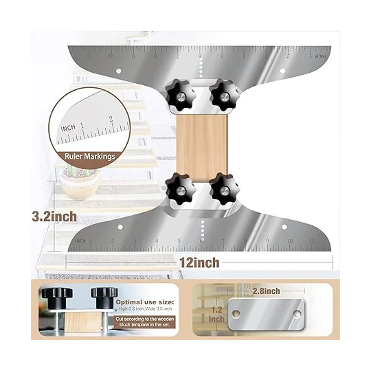 Flexible ajustable: la plantilla de la banda de rodadura te ayudará a diseñar peldaños de escalera, elevadores y estantería. Ajusta fácilmente el ángulo y la longitud para que coincida con cualquier requisito de trabajo, funciona con escaleras, elevadores y estantes.