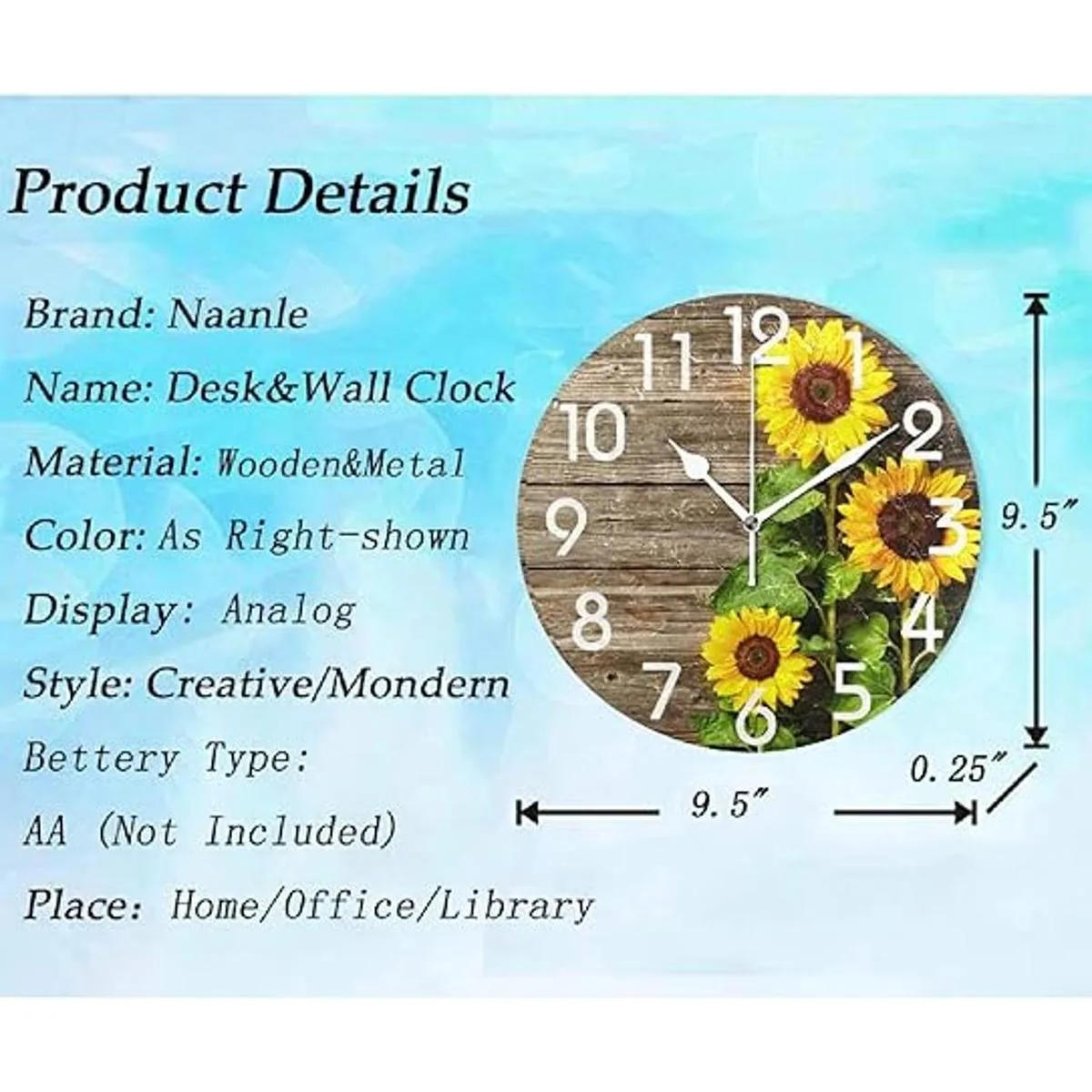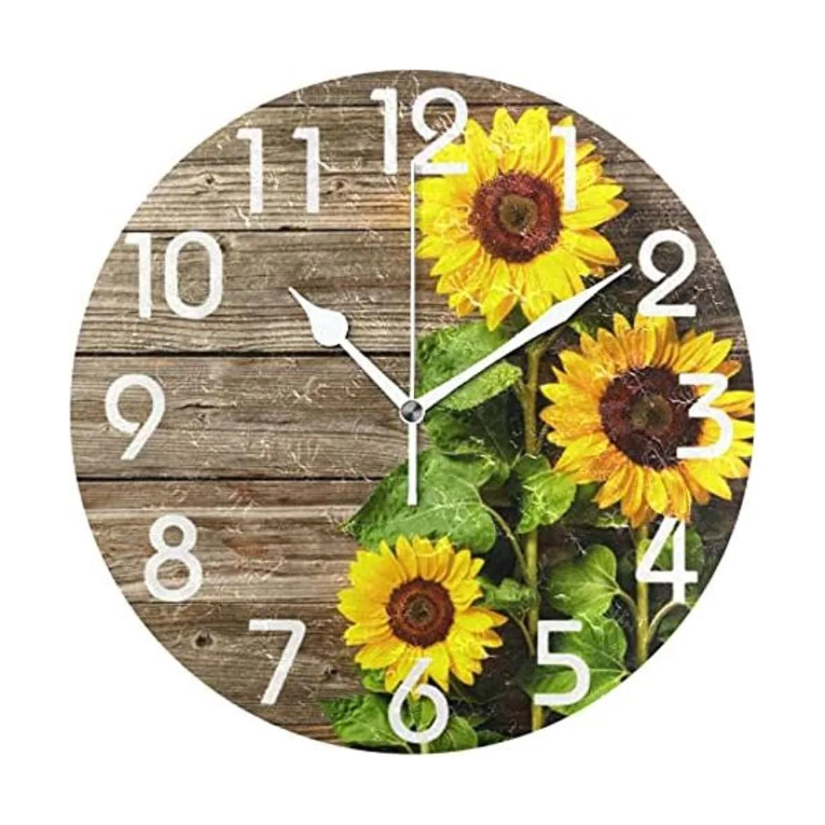 Naanle Elegante reloj de pared redondo de madera vintage con diseño de girasoles 3D, de 9.5 pulgadas, funciona con pilas, de cuarzo, analógico, silencioso, para el hogar, oficina, escuela
