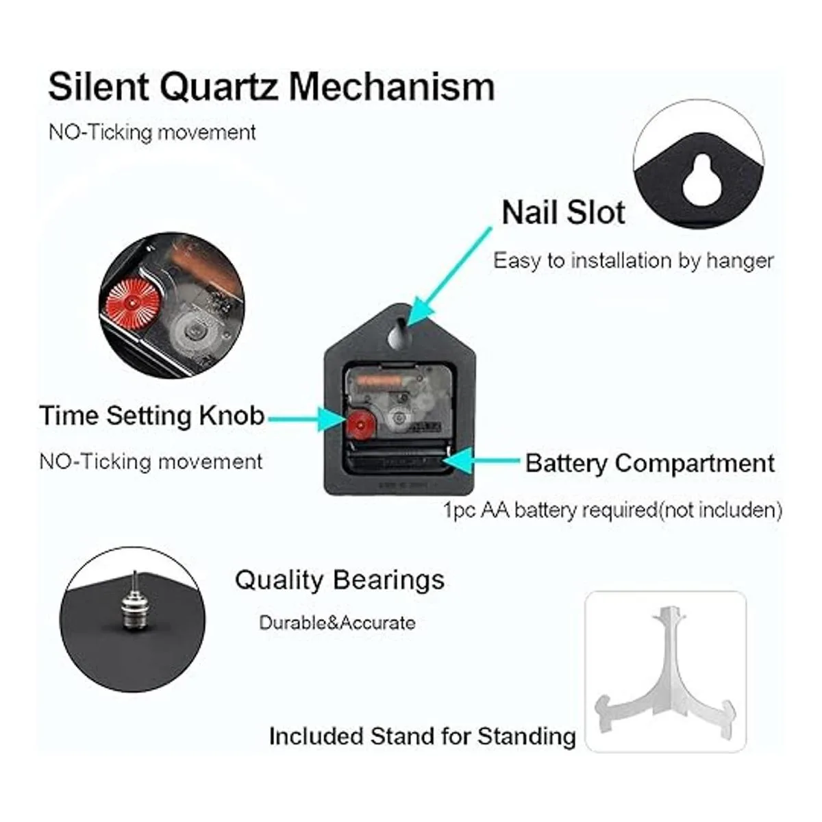 Funciona con pilas: complicado con 1 batería AA no incluida, una buena batería se puede utilizar durante más de un año, ahorro de energía; fácil de colocar en el escritorio y con gancho para colgar en la pared.