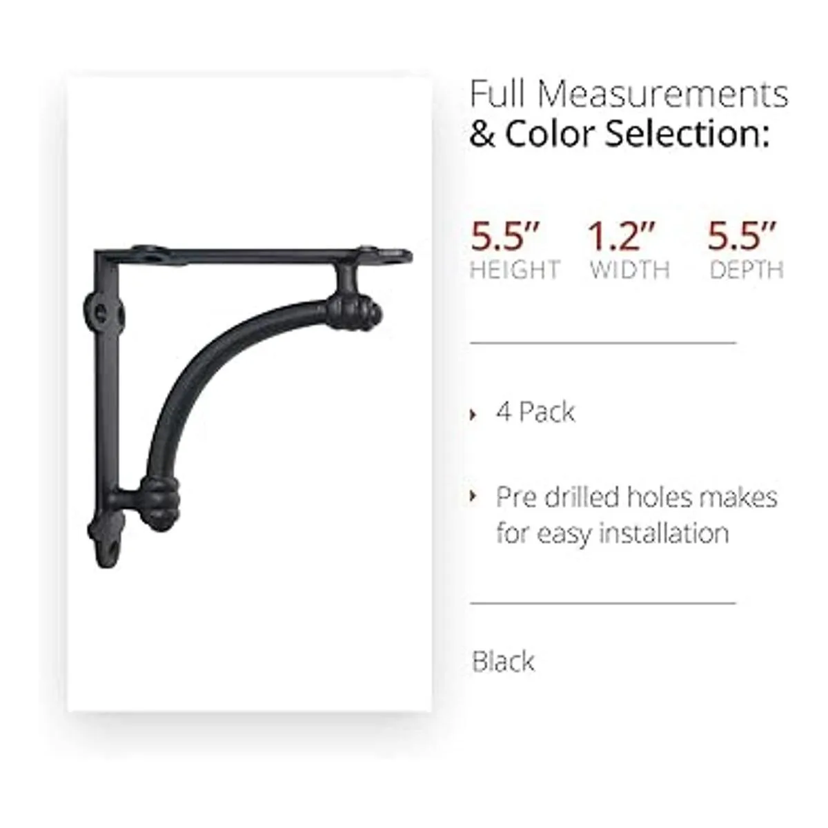 Soportes fáciles de instalar: agujeros preperforados para una fácil instalación. El soporte mediano mide 5.5 x 5.5 x 1.2 pulgadas.