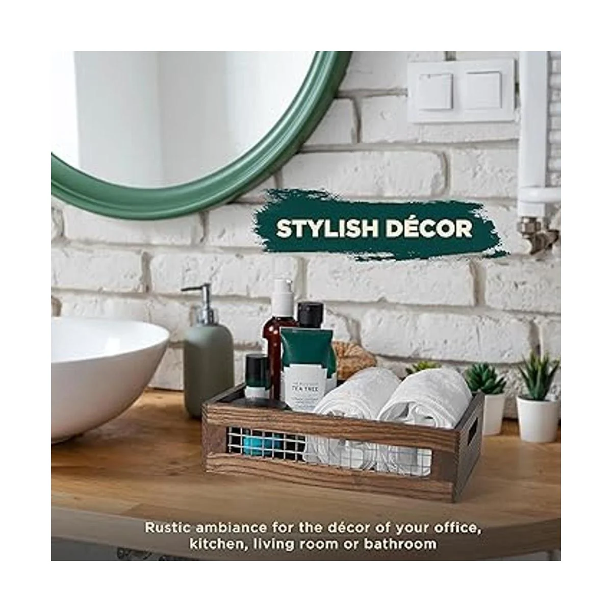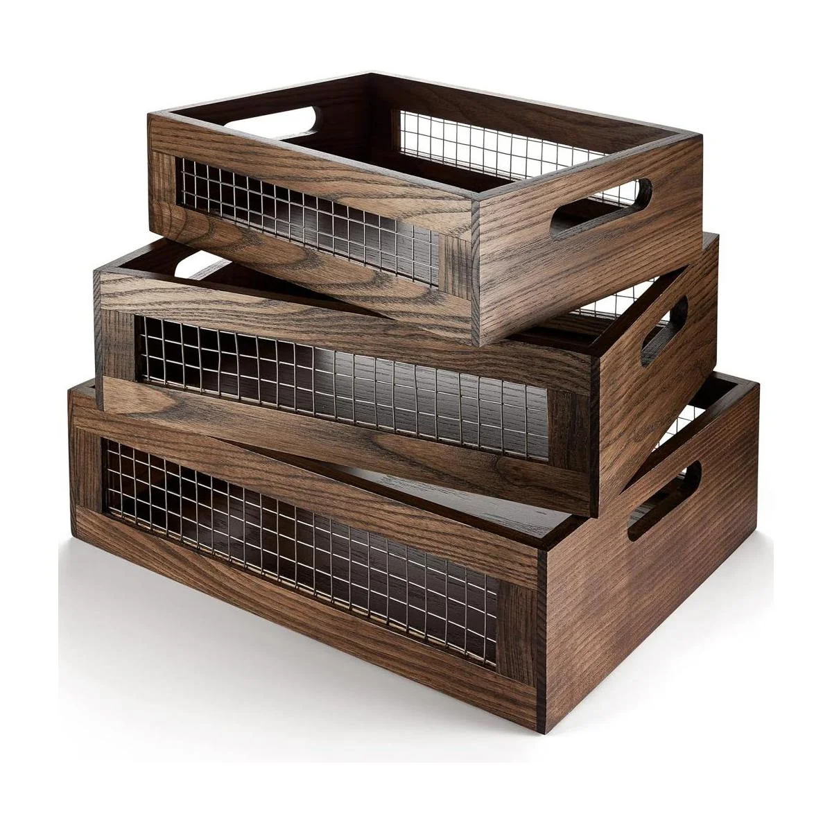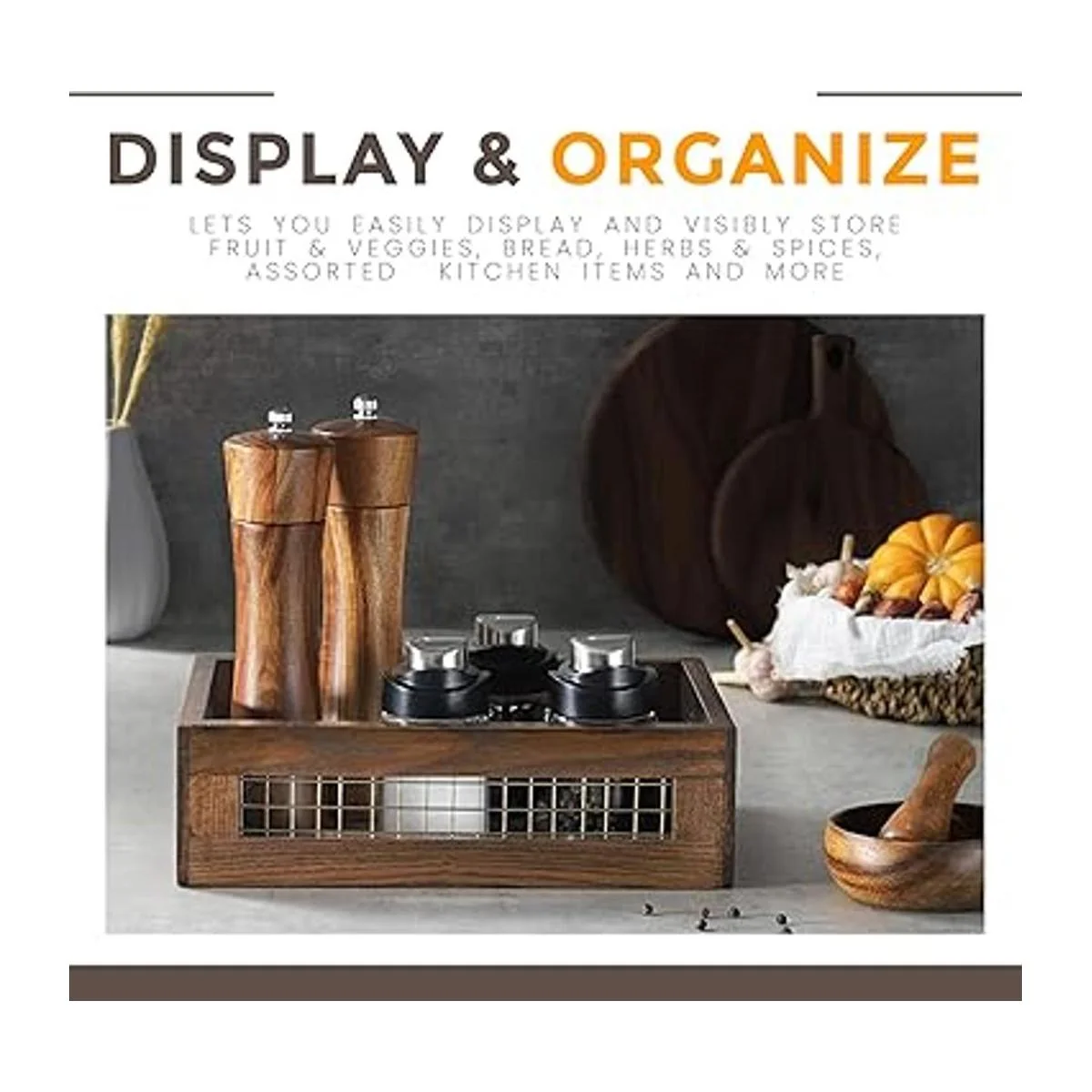 Frutas y verduras también: ya que la estructura cuenta con malla de alambre resistente en ambos lados, nuestras cajas de madera para encimera también pueden mantener frutas y verduras. El revestimiento de malla permite el flujo de aire y la transpirabilidad, por lo que tus frutas permanecen frescas.