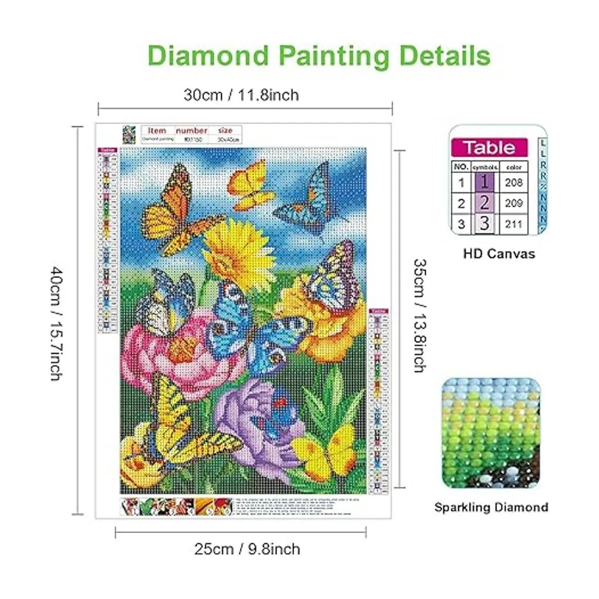 Kits de pintura de diamantes de flores de mariposa Utiliza el exclusivo diamante redondo de diamantes de imitación y el patrón diseñado para hacer una combinación razonable para realizar las manualidades brillantes y vívidas hechas a mano. Las cuentas cubren toda la imagen y hacen que la imagen sea más brillante.