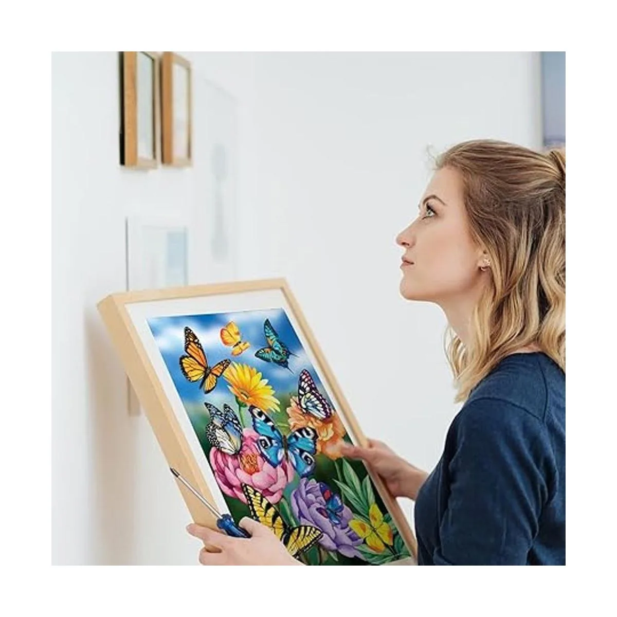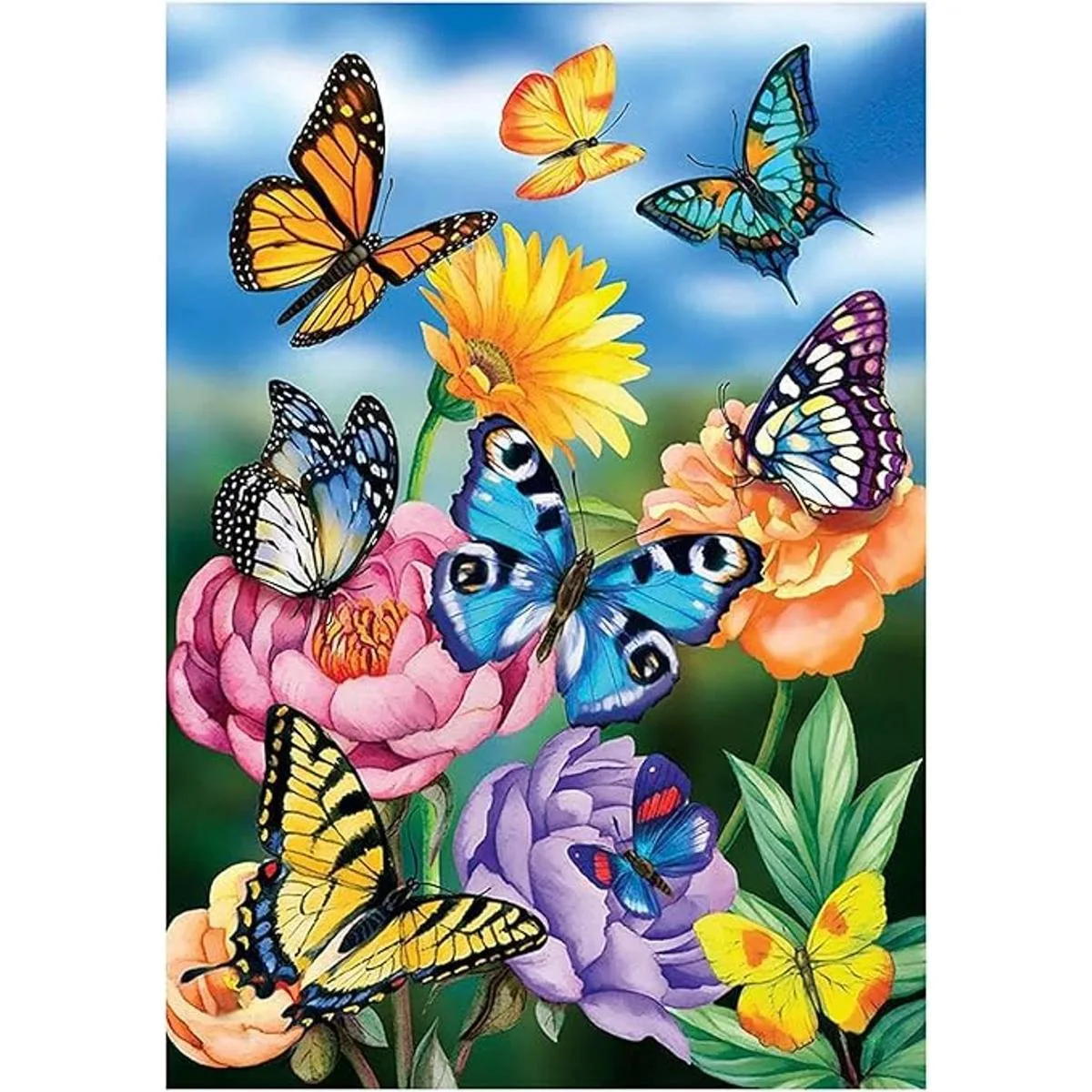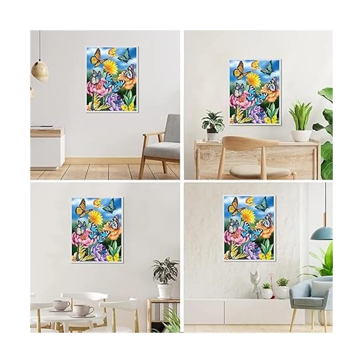 NAIMOER Kits de flores de pintura de diamante de mariposa para adultos, kits de pintura de diamante de mariposa 5D redondos de taladro completo, kits de arte de flores para decoración de pared del hogar, 11.8 x 15.8 pulgadas