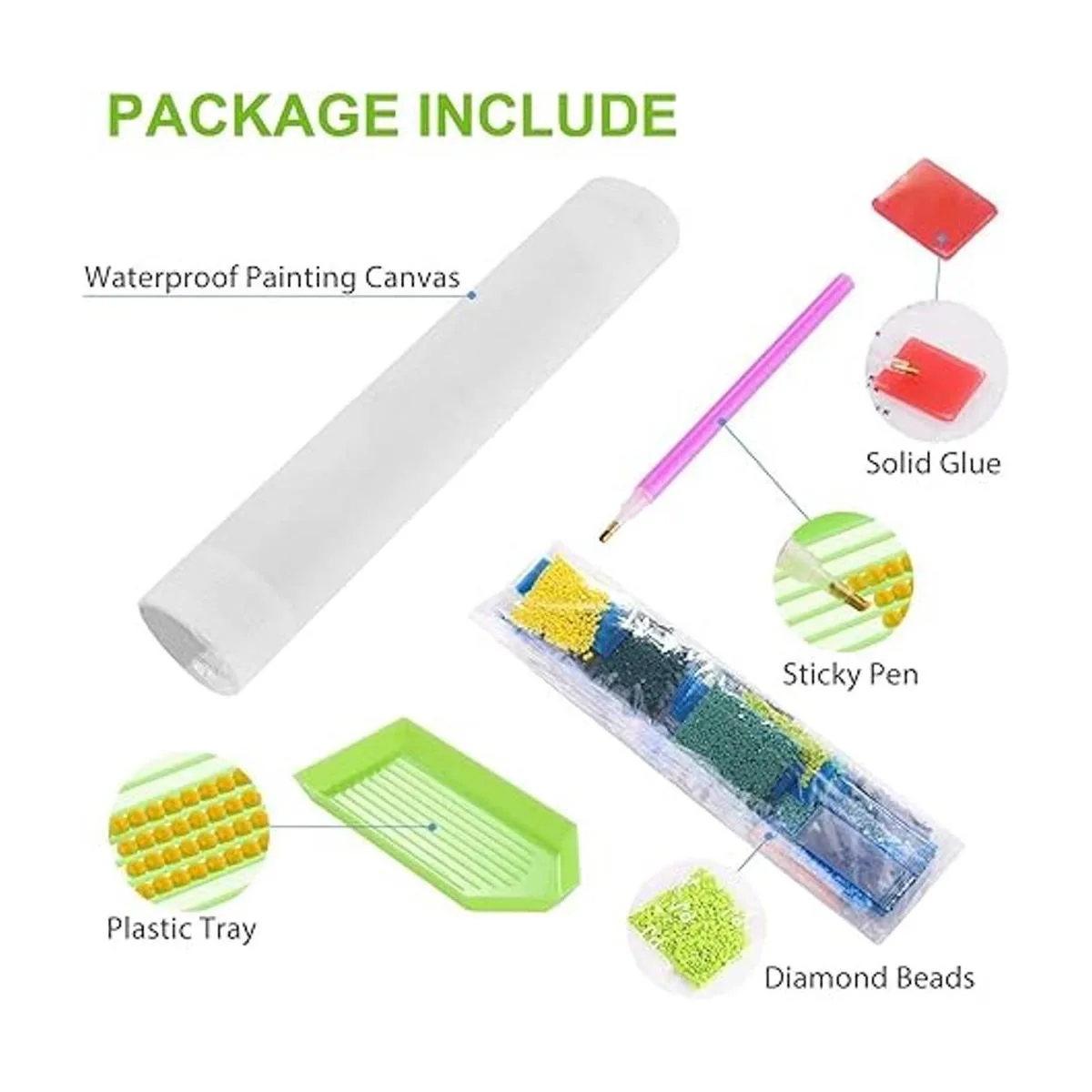 Paquete y tamaño El paquete viene con lienzo de lino, diamantes, juego de herramientas, arcilla. Ten en cuenta que la pintura completa de diamantes no incluye el marco. 11.8 x 15.7 pulgadas es todo el tamaño del lienzo, incluyendo espacio en blanco.